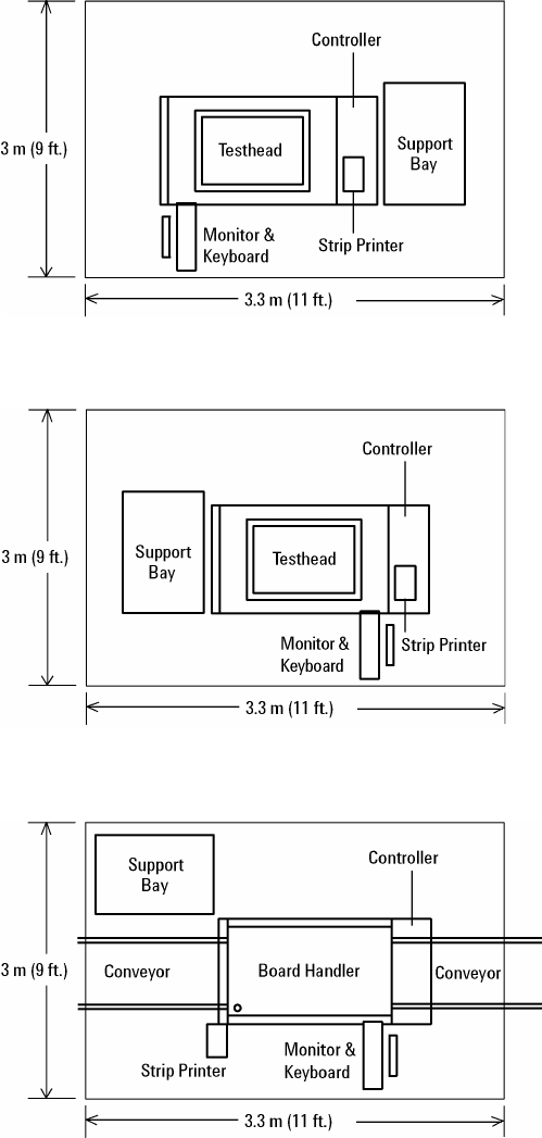 Planning 2 Site Preparation 2-3 Figure 2-1 Recommended layouts for Medalist i3070 systems (a) i327x 1-module system (c) i327x 2-module sys tem (b) i327x plus 2-module small footprint sys tem with support bay
