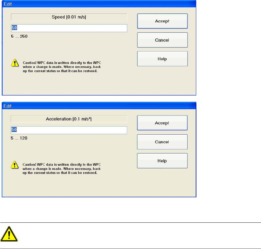 Edit...: Opens a dialog box in which you can enter the required speed and acceleration.