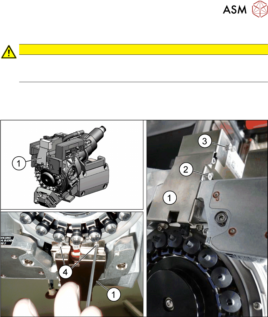 ► Bauen Sie den Kopf aus der Maschine aus. Für den Aus- und Einbau des Bestückkopfes