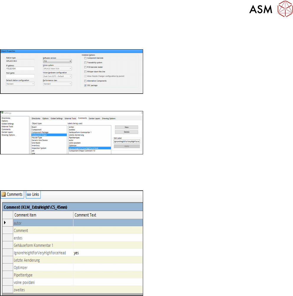 In SIPLACE Pro muss ein spezieller Kommentar für die Gehäuseform erstellt und bestätigt werden.