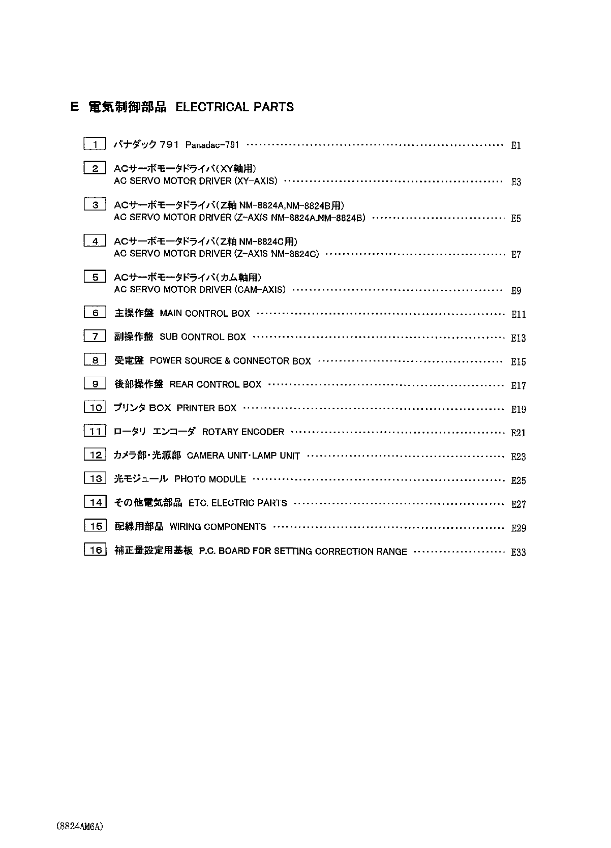 E 電気制御部品 ELECTRICAL PARTS A 于夕 791 Panadac - 791 El 2 j AC 廿一术乇一夕卜 3 彳八 ( XY 軸用 ) AC SERVO MOTOR DRIVER ( XY - AXIS ) E 3 I 3 1 AC 廿一术乇一夕 心 、 * ( Z 軸 NM - 8824 A . NM - 8824 B 用 ) AC SERVO MOTOR DRIVER ( Z - AXIS NM _ 88…