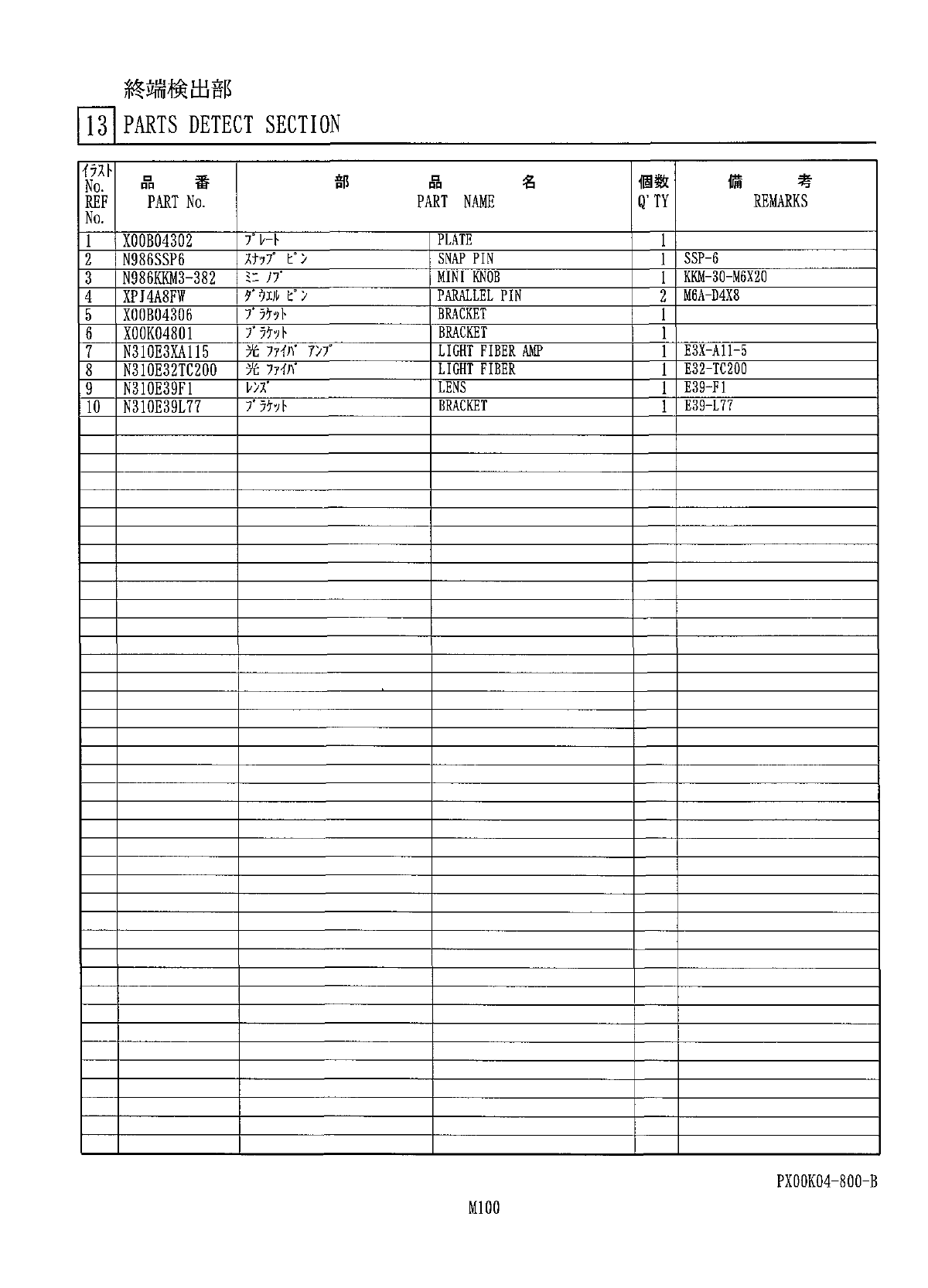 終端検出部 l 3 l PARTS DETECT SECTION o / 1 V 801 〆 PX 00 K 04 - V 800 - B M 101