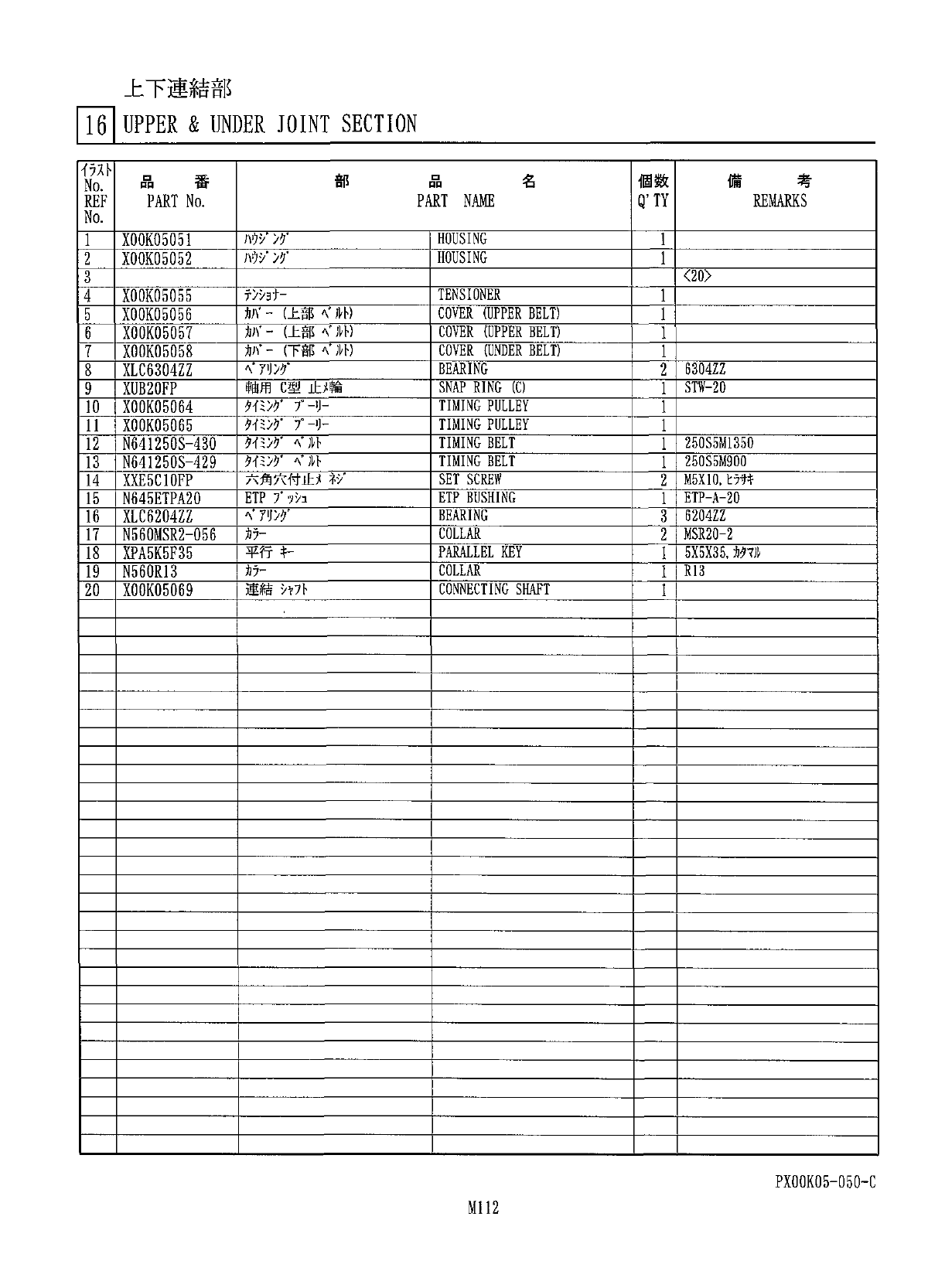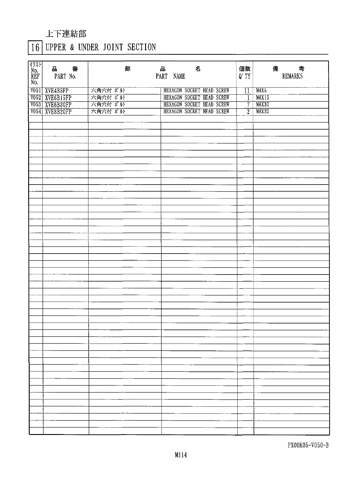 上下連結部 III UPPER & UNDER JOINT SECTION V 053 V 053 miiiiiftMiiiiioii V 051 PX 00 K 05 - VO 5 O - B M 113