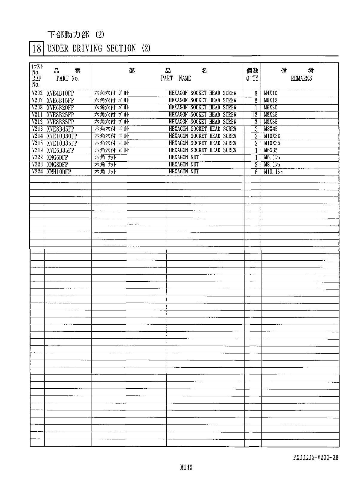 下 部 動 力 部 ⑵ 181 UNDER DRIVING SECTION ( 2 ) V 208 V 202 V 223 V 211 V 224 V 207 V 2 t 3 V 224 V 211 V 215 V 212 V 214 V 224 i V 2 t 4 V 222 PX 00 K 05 - V 200 - 3 B M 139