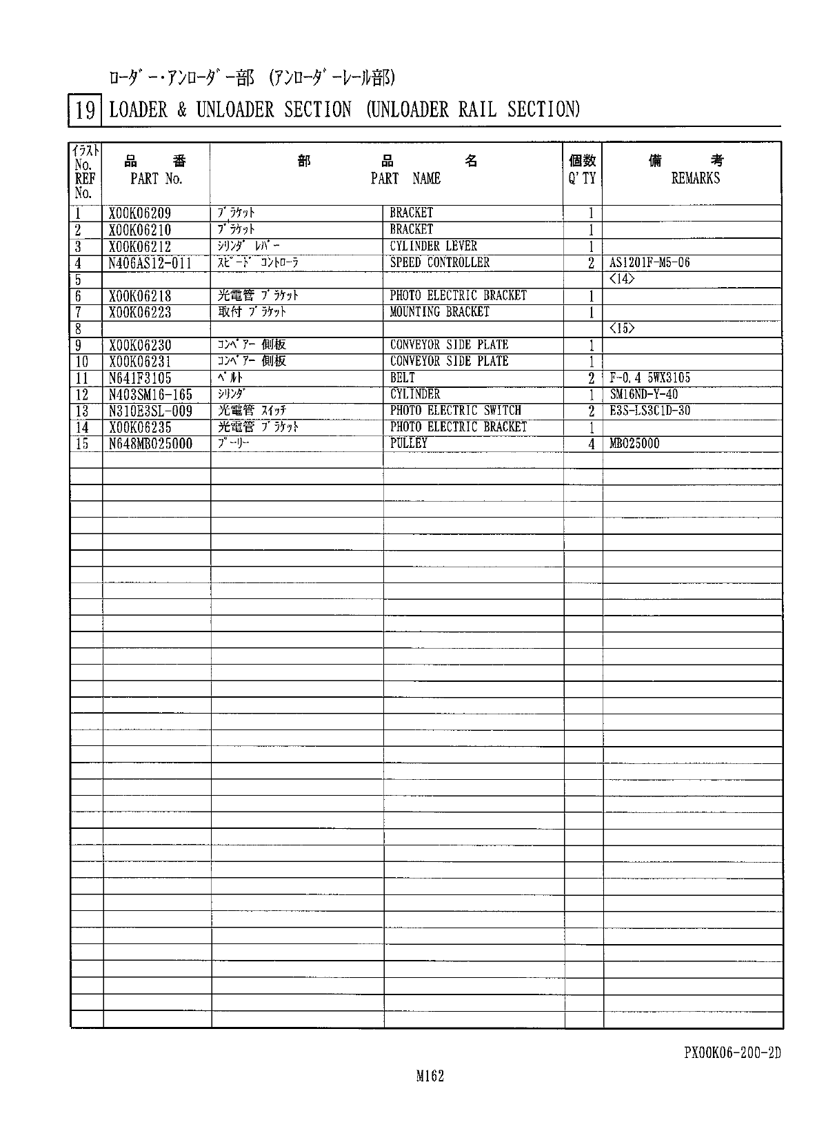 口 - 夕 - . 7 〉 口 - 夕 、 、 - 部 夕 ’ 、 - I / - 几部 ) 191 LOADER & UNLOADER SECTION ( UNLOADER RAIL SECTION ) 考 個 数 備 番 部 名 品 品 No . PART NAME Q ' TY REMARKS REF PART No . No . 7 ' 竹 ' ? 卜 X 00 K 06209 BRACKE…