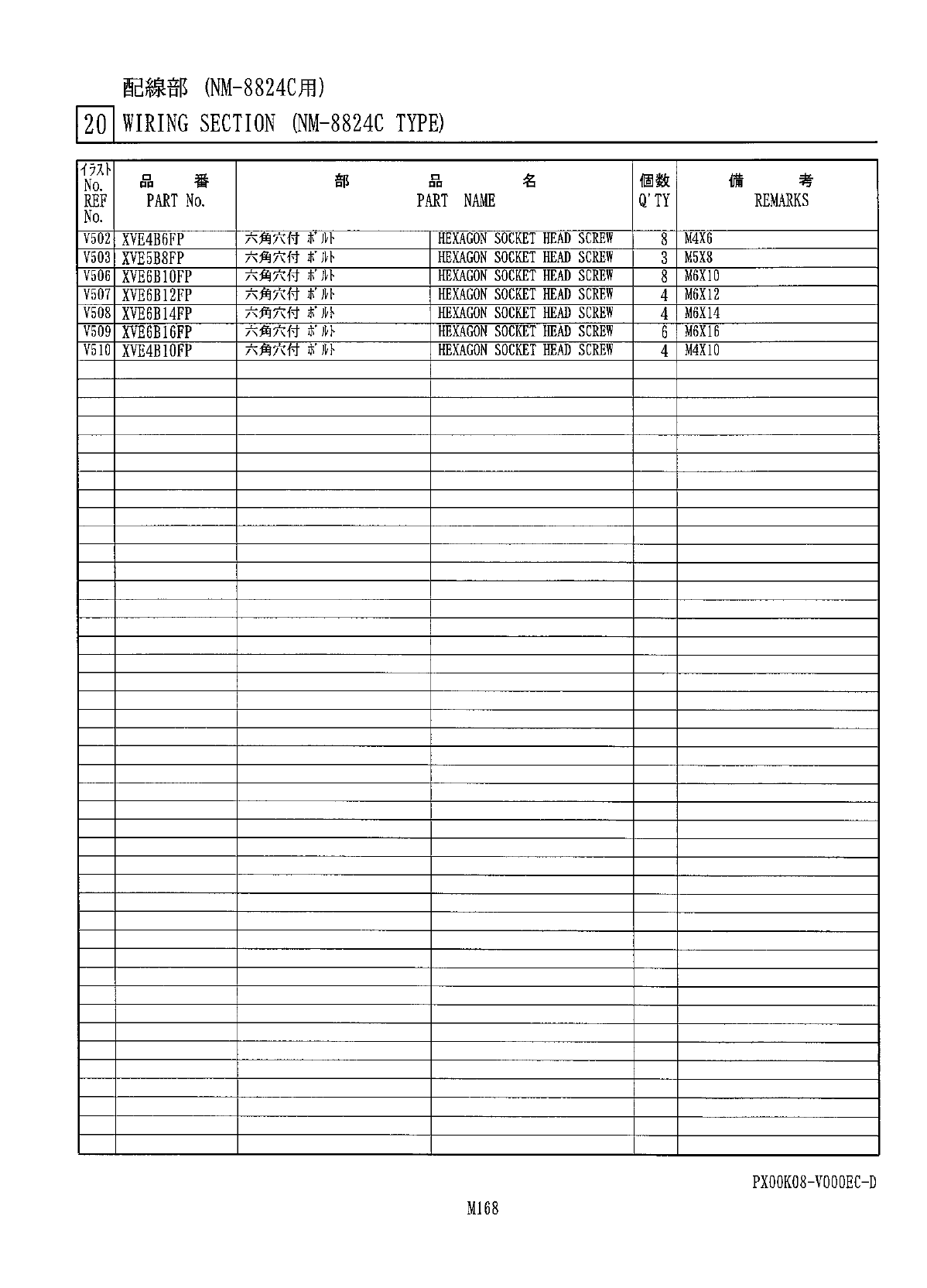 配線部 ( NM - 8824 C 用 ) 20 l WIRING SECTION ( NM - 8824 C TYPE ) 考 部 個 数 備 番 名 品 品 No . Q ’ TY REMARKS PART No . PART NAME REF No . 六 角 穴 付 矿 J 1 4 V 502 HEXAGON SOCKET HEAD SCREW 8 M 4 X 6 XVE 4 B 6 FP 六 角 穴 付 扩 於 V 503 X…