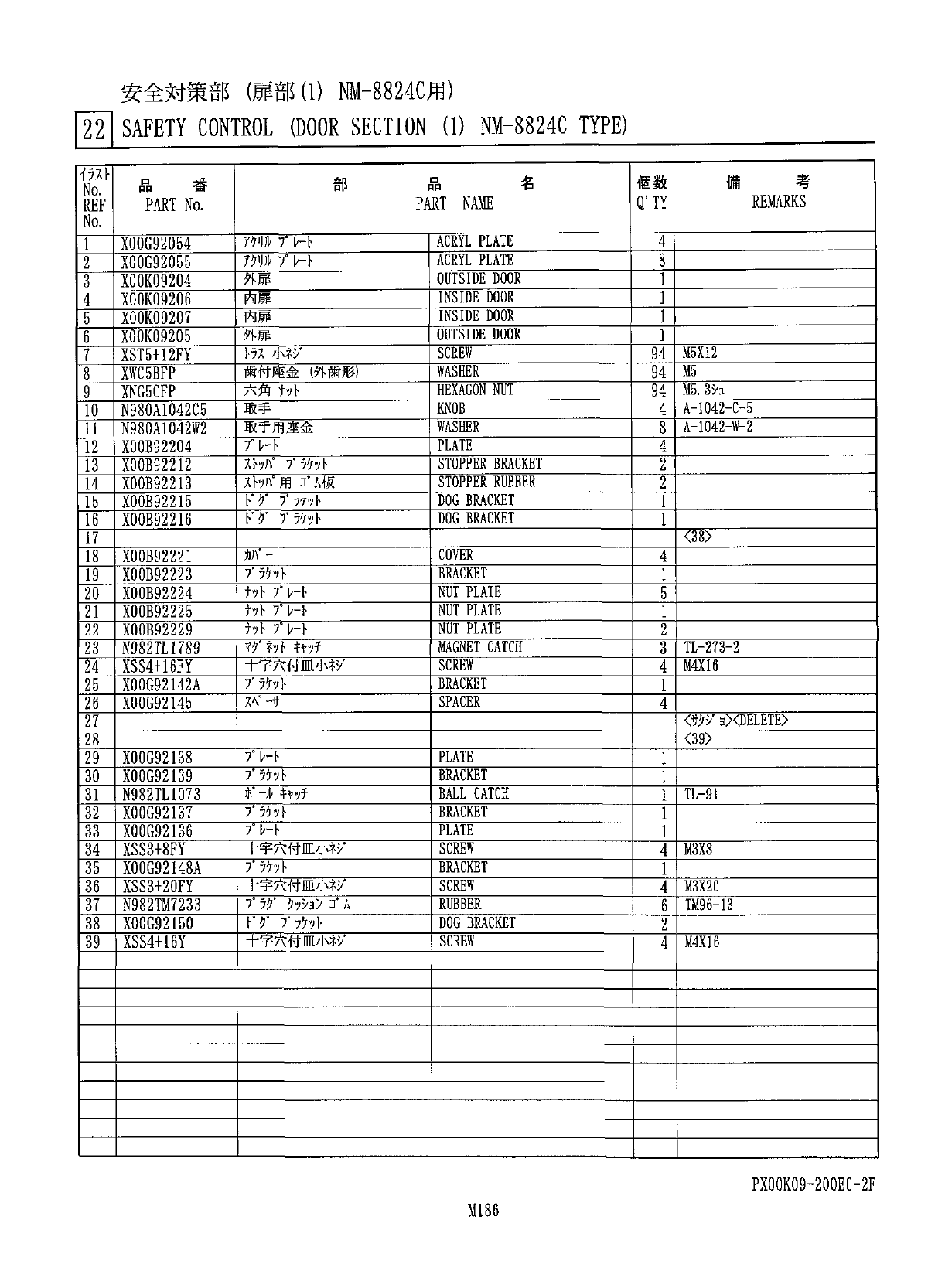 安全対策部 ( 扉部 ⑴ NM - 8824 C 用 ) 22 l SAFETY CONTROL ( DOOR SECTION ⑴ NM - 8824 C TYPE ) 考 備 個 数 名 部 品 番 品 No . REMARKS Q ’ TY PART NAME PART No . REF No . ACRYL PLATE 4 mFTFF X 00 G 92054 mFrFF 8 ACRYL PLATE XOOG 92 Q 55 2 …