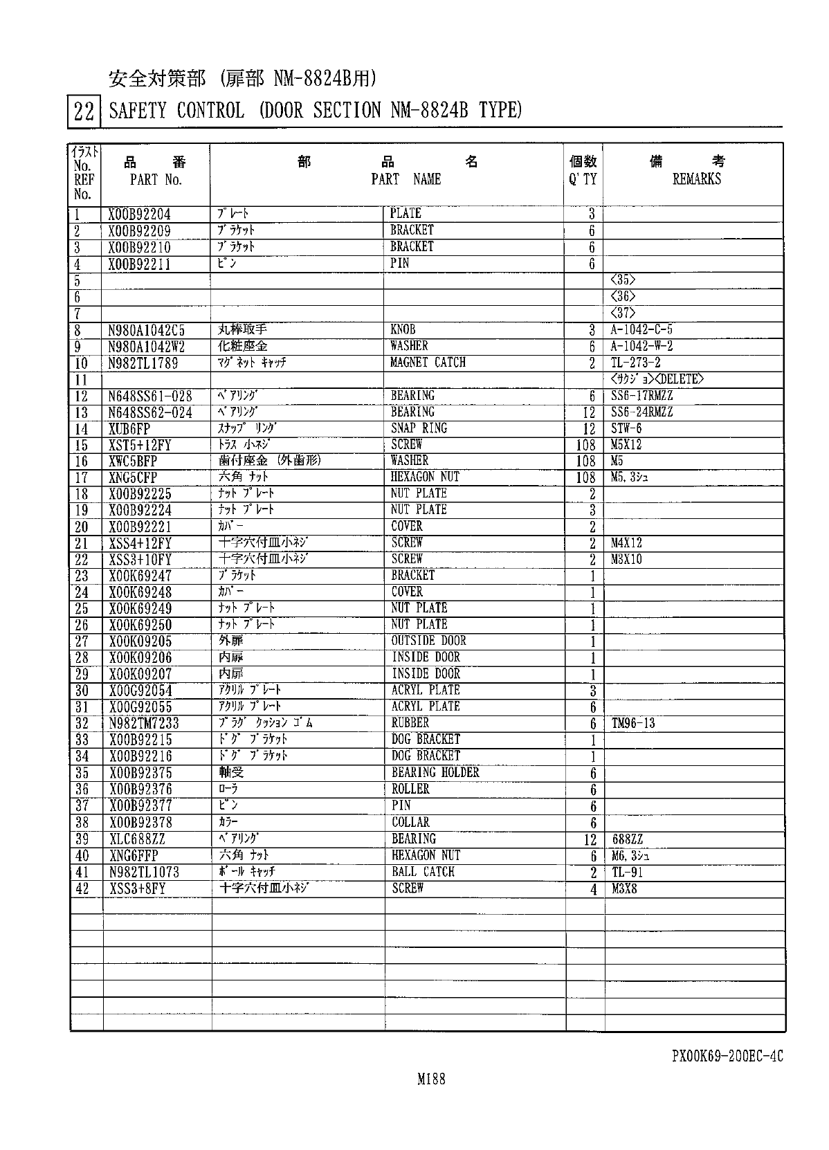 PX 00 K 69 - 200 EC - 4 C M 187 安全対策部 ( 扉部 NM - 8824 B 用 ) 22 l SAFETY CONTROL ( DOOR SECTION NM - 8824 B TYPE ) * A 0 39 36 39 t f 1038 — 0 30 V 36 ^ 177