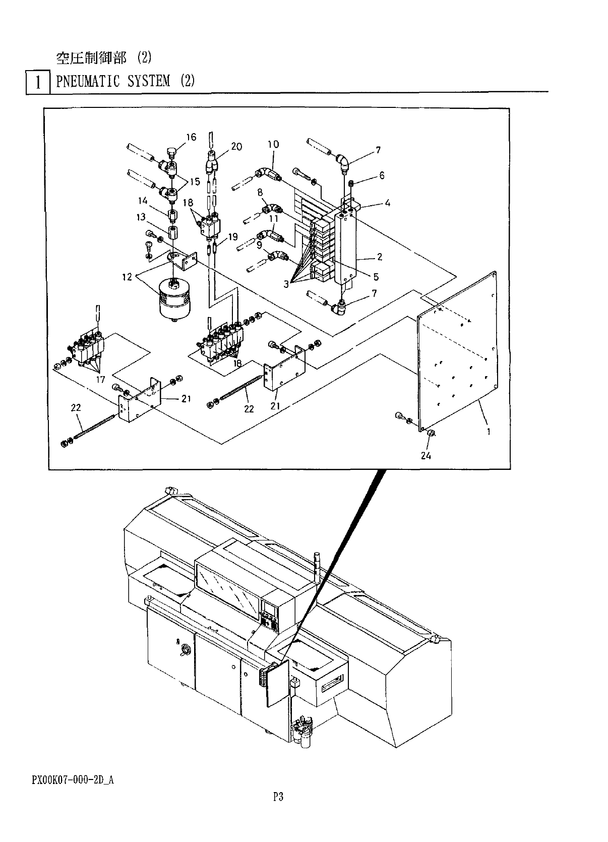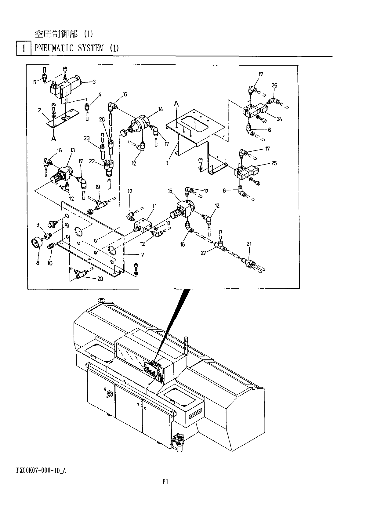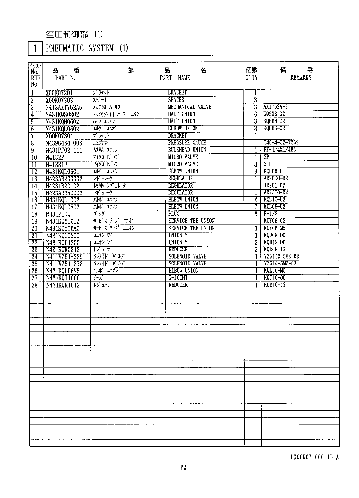空 圧 制 御 部 ⑴ ri PNEUMATIC SYSTEM ⑴ 考 個 数 備 部 名 番 品 品 No . Q ’ TY REMARKS PART NAME REF PART No . No . T 竹分 BRACKET X 00 K 0720 I 3 SPACER X 00 K 07202 2 AXT 752 A - 5 Trsnor MECHANICAL VALVE 3 N 413 AXT 752 A 5 3 KQS 08 -…