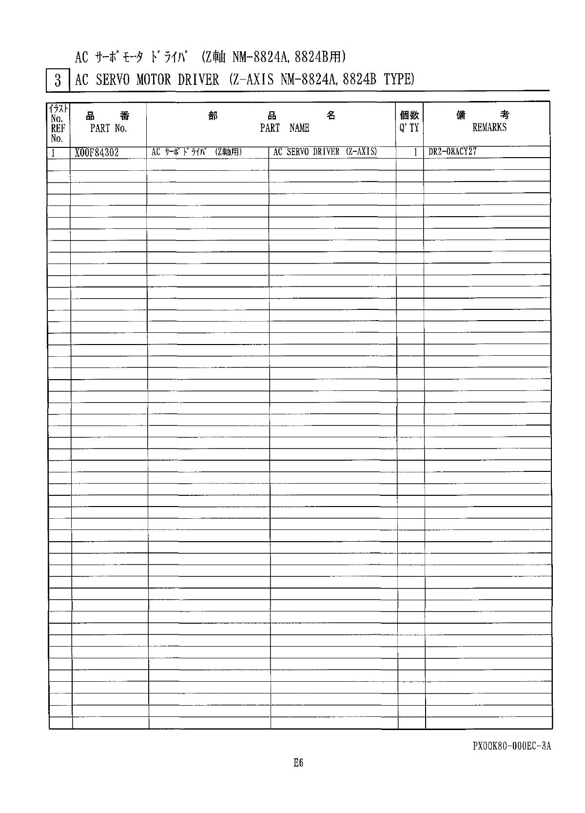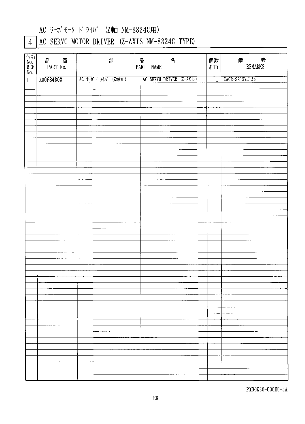 AC 1 HT 卜夕 K W ( Z 軸 NM - 8824 C 用 ) II AC SERVO MOTOR DRIVER ( Z - AXIS NM - 8824 C TYPE ) c PXOOK 8 Q - OOOEC - 4 A E 7