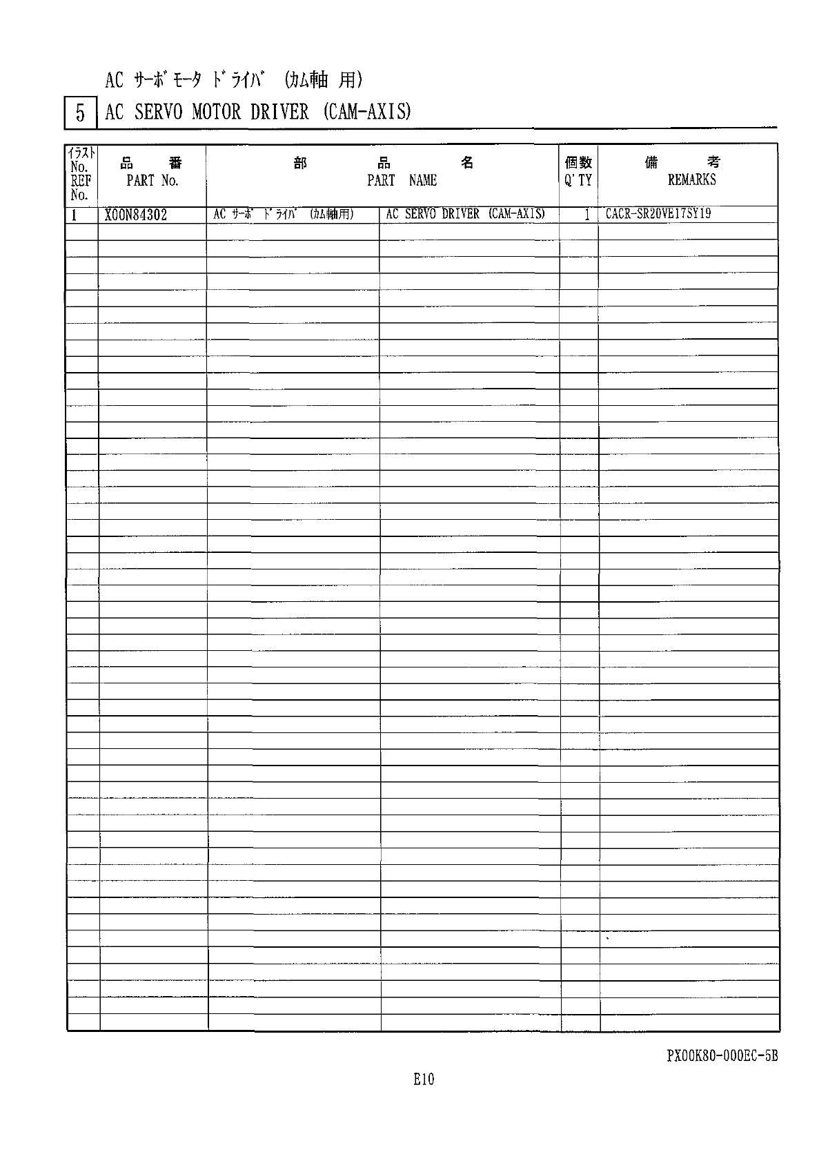 AC IK ' , 、 t - 夕 F MA * ( 力 A 軸 用 ) FIAC SERVO MOTOR DRIVER ( CAM - AXIS ) 伐卜 考 備 名 個 数 番 部 品 品 No . REMARKS PART NAME Q ' TY PART No . REF No . AC ^ V W ( 力 i 軸用 ) CACR - SR 20 VE 17 SY 19 AC SERVO DRIVER ( C…
