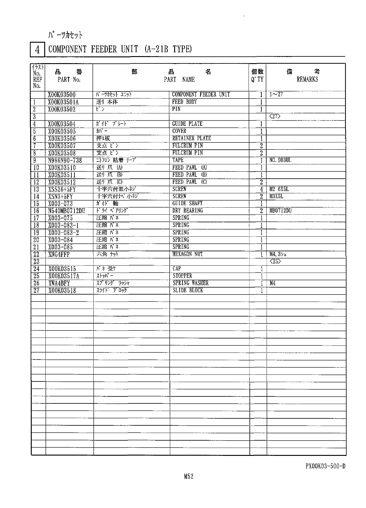 ) \ ° - 7 力切 F T 1 COMPONENT FEEDER UNIT ( B - 21 A TYPE ) PX 00 G 03 - 500 - B M 53