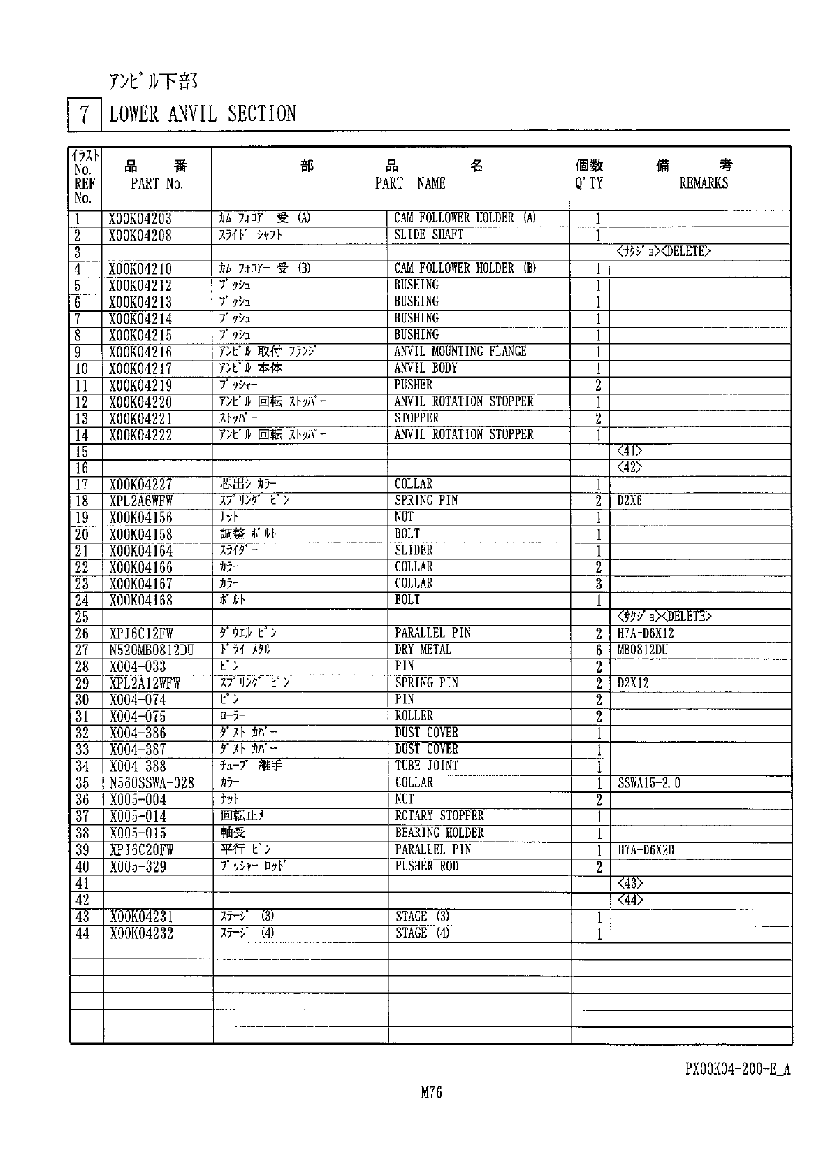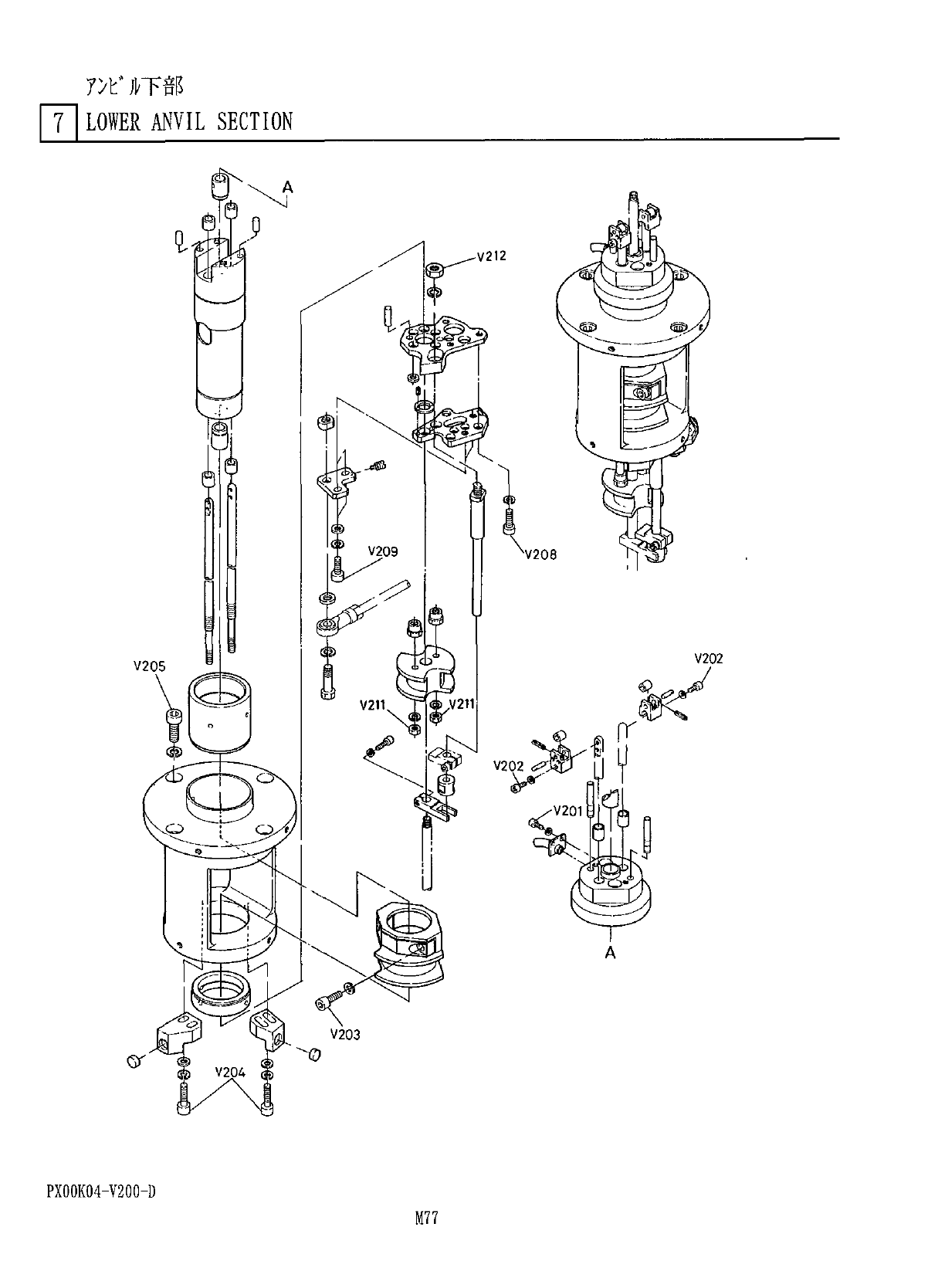 7 > t 1 下部 7 ] LOWER ANVIL SECTION A p 4 V 212 r PXOOK 04 - V 200 - D M 77