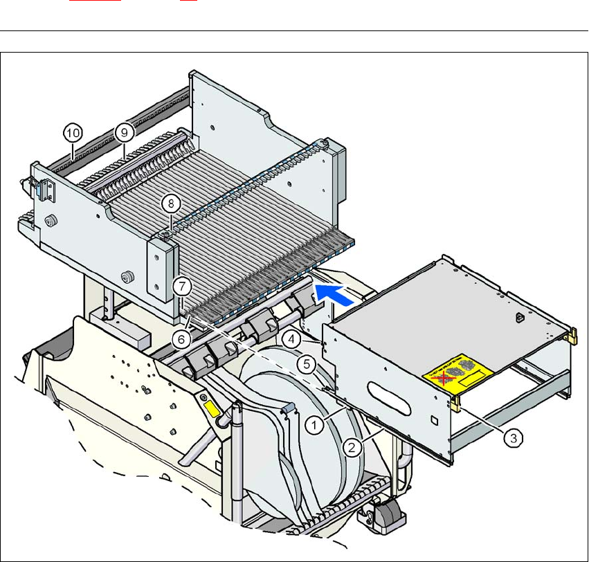 図 3.9 - 19 SIPLACE X シリーズ以降の部品トロリーのワッフルトレイホルダを挿入する