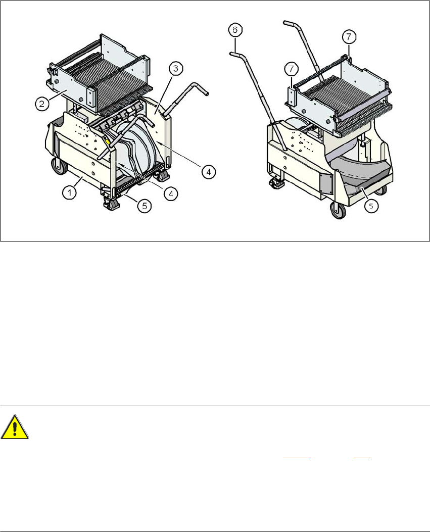 ユーザーマニュアル SIPLACE X シリーズ 3 マシンのテクニカルデータ ソフトウエアバージョン SR.70x.xx 以降 2011 年 1 月日本語版 3.10 SIPLACE X シ リーズ部品トロリー 199 3.10.2 説明 標準バージョンでは、テープリ ールコンテナ ( 図 3.10 - 3 のアイテム 3) に、最大 17" (432 mm) のテープリールが入ります。 テープコンテナと部品トロリー 間の左…