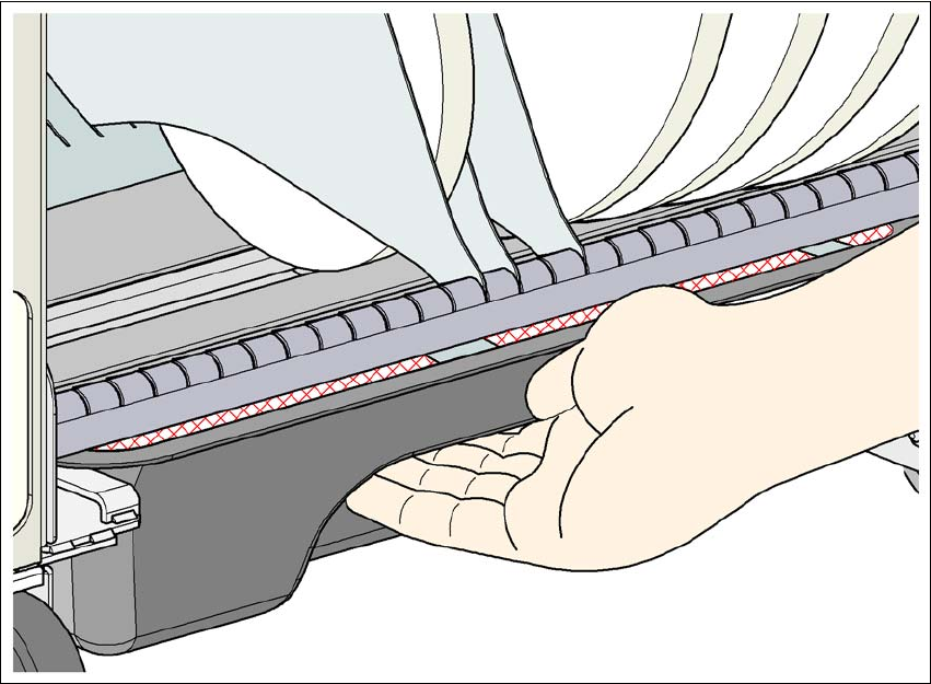 ごみテープコンテナは、空にするとき、部品トロリーから引き出さなければなりません。この