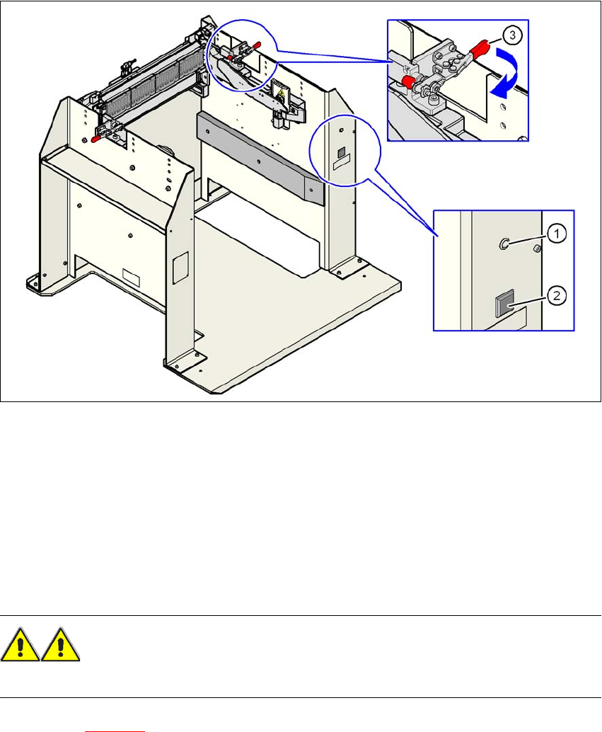 → 部品トロリーが、結合ステーションのベースプレート上に完全に自立していることを確認