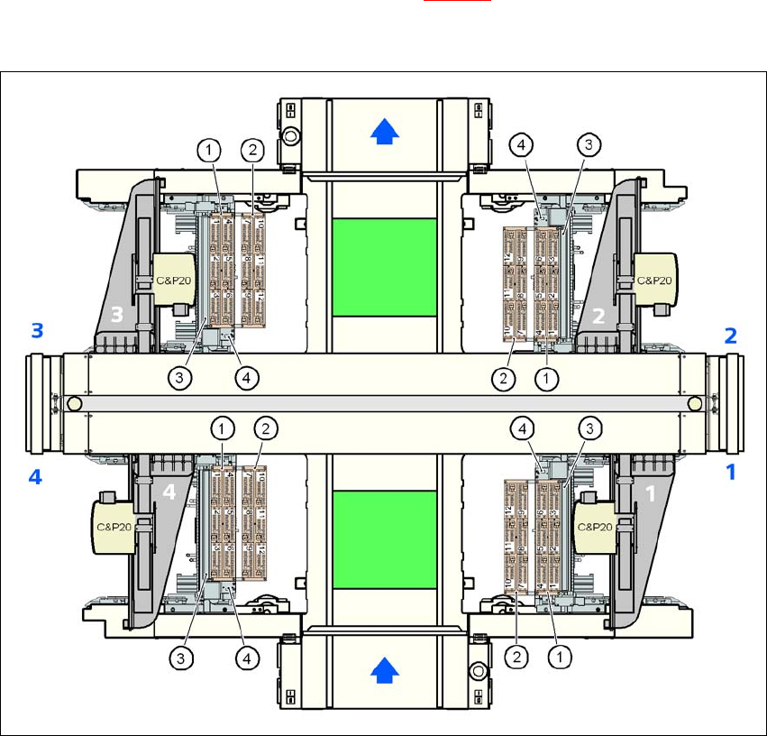 – ロケーション 2 および 4 では、実装ヘッドは、内側のノズルマガジン(図 6.1 - 2