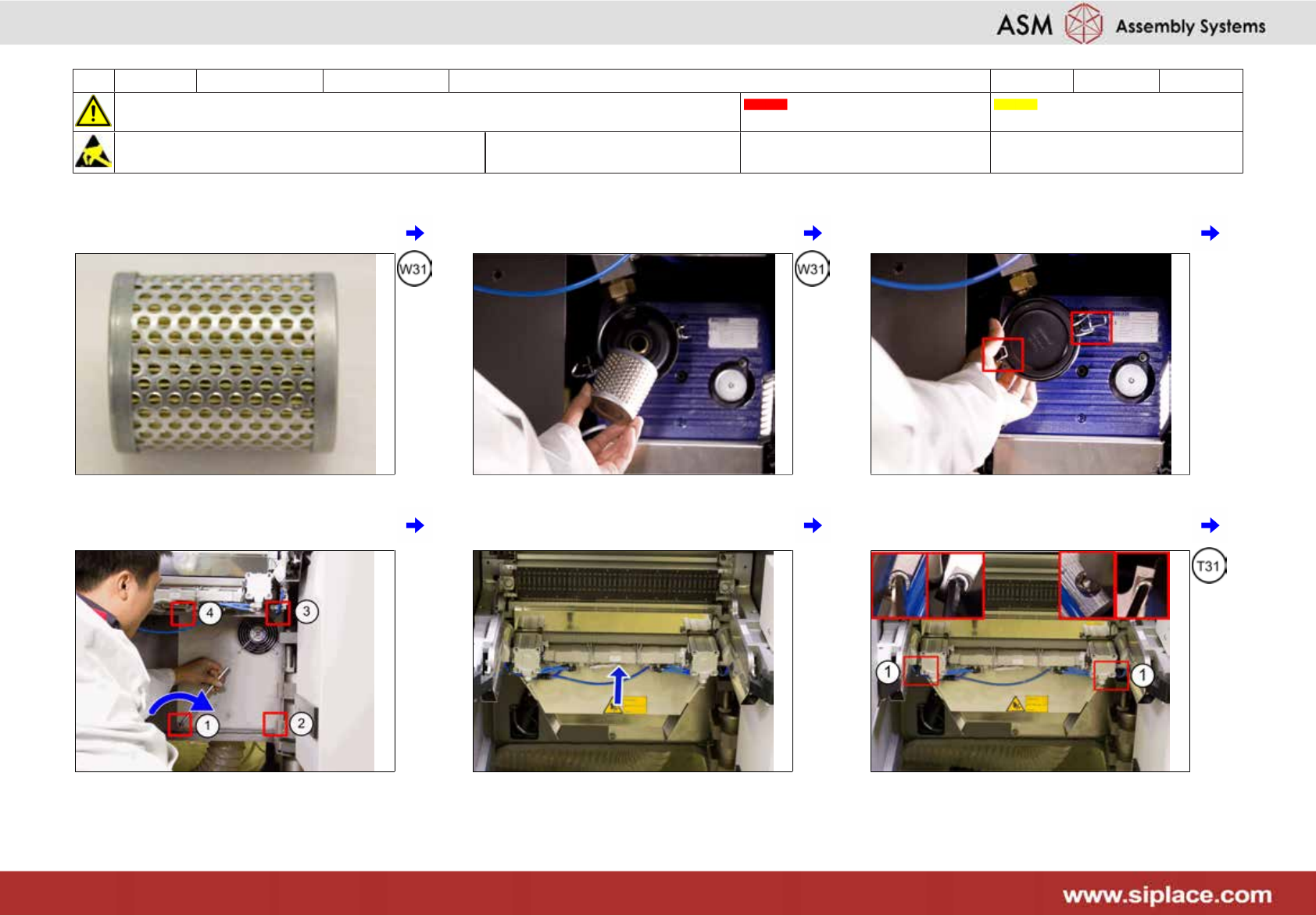 13 每六个月 X_系列_S 真空泵 **/******** 6 分钟 y 3/3 注意开始维护前,请参阅用户手册中的安全说明 贴片机状态 关闭 传送系统空 注意!遵守防静电守则 工具: T31 易损件: W31 耗材: C19 13 为 4 号悬臂的真空泵重复步骤 1 到 12