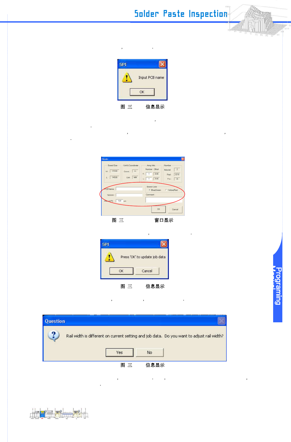 www .pemtron.com 15 Step 4 : “ Input PcbName ” 信息将显示 点击 “ OK ” -2-21 Step 5 : 请 在 Header 窗 口 输 入 群 组 名 和 板 名 并 选 择 板 的 颜 色 “ Blu e /Gr een ” 或 “ Y ellow/Red ” 在 “ St e nc i l [T] ” 输 入 钢 网 厚 度 有 需 要 的 在 “ Comment ” 输 入 一…