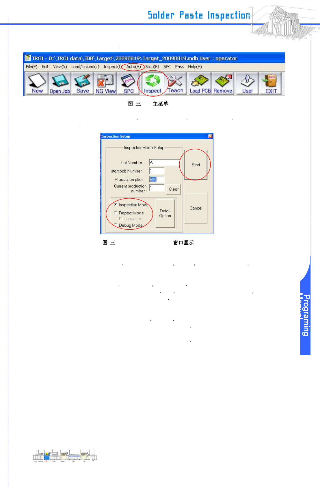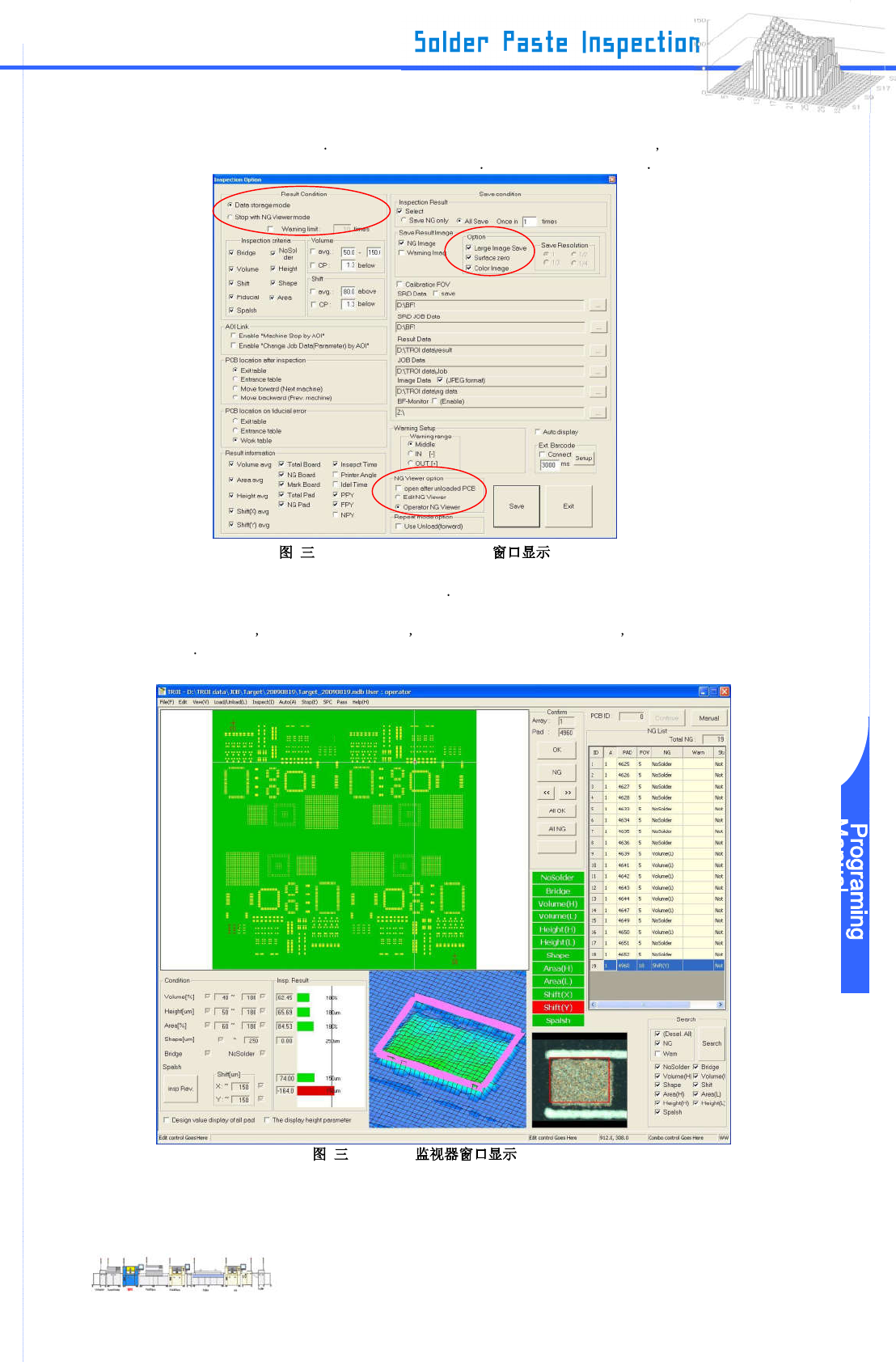 www .pemtron.com 25 Step 3 : 选择 “ D e t ail Option ” 更改停止选项为“ Stop with NG Viewer mode ” NG 判断显示为 “ Edit NG Vie w er ” 和 “ Large Image Save ” 点击 “ OK ” 确保设定 -3-10 “ Inspection S e tup ” Step 4 : 检查实际 PCB 使用 “ Inspection …