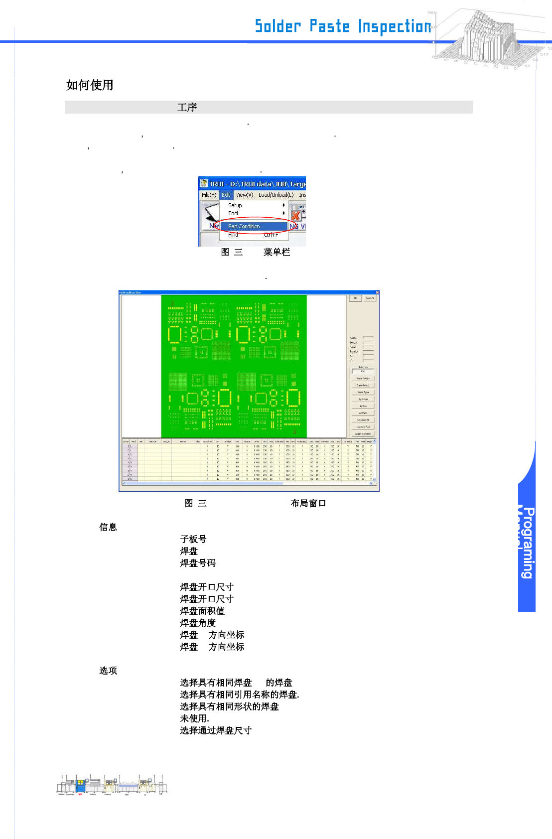 www .pemtron.com 27 III-4 P A D CONDITION III-4-1 PAD CONDIT ION 本节说明调整 PCB 没有成像检查数据的功能 如果你使用此功能 你可以设置或修改检查数据和通过焊盘尺寸搜索 下面 我们专注于一般工序 Step 1 : 首先 从主菜单选择“ P AD Condition ” -4-1 Step 2 : “ Pad Condition ” 窗口显示在布局窗口 -4-2 Pad …