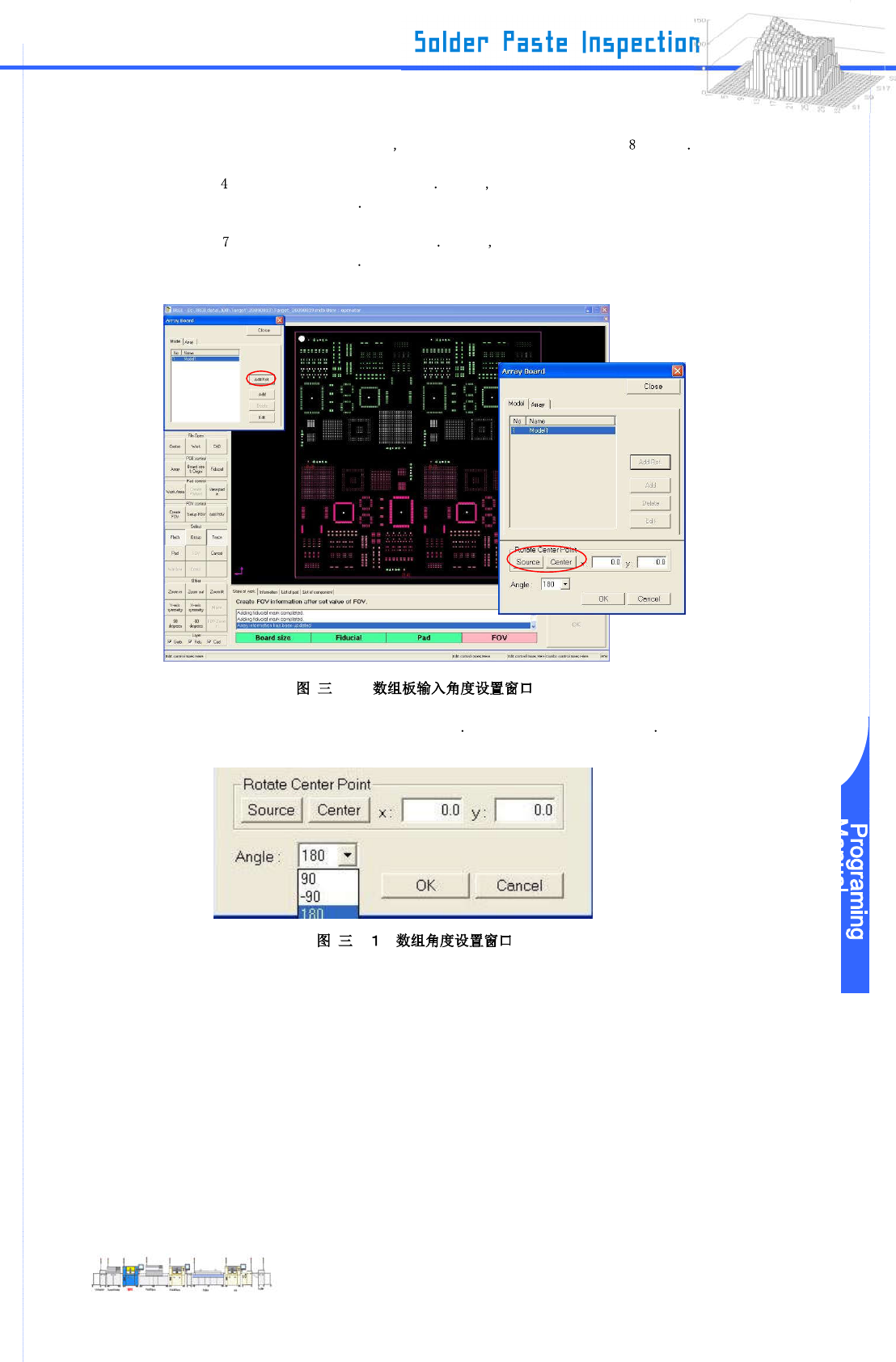 www .pemtron.com 37 Step 15 : 输入的检查区域可以在布局窗口上检查 -5- 3 Step 16 : 要 导入的角度发 生变化的数据 设置输入 标准焊盘在角 度发生变化和导 入检查区域上 设置 的 方法与第 步同样 Step 17 : 当你在输入来源时设置焊盘 选择“ Source ”在 Model2 A rray gap 上 , A rra y Board 对话 框 Step 18 : 根据第 步程序执行输入…