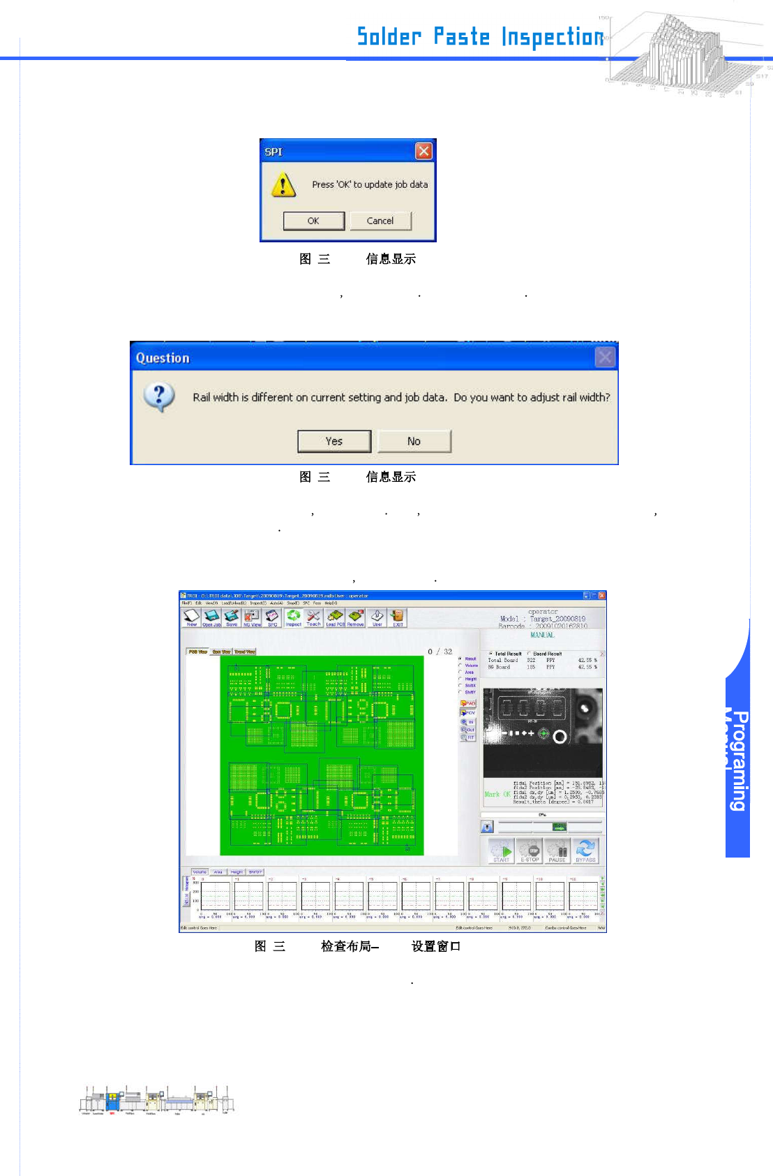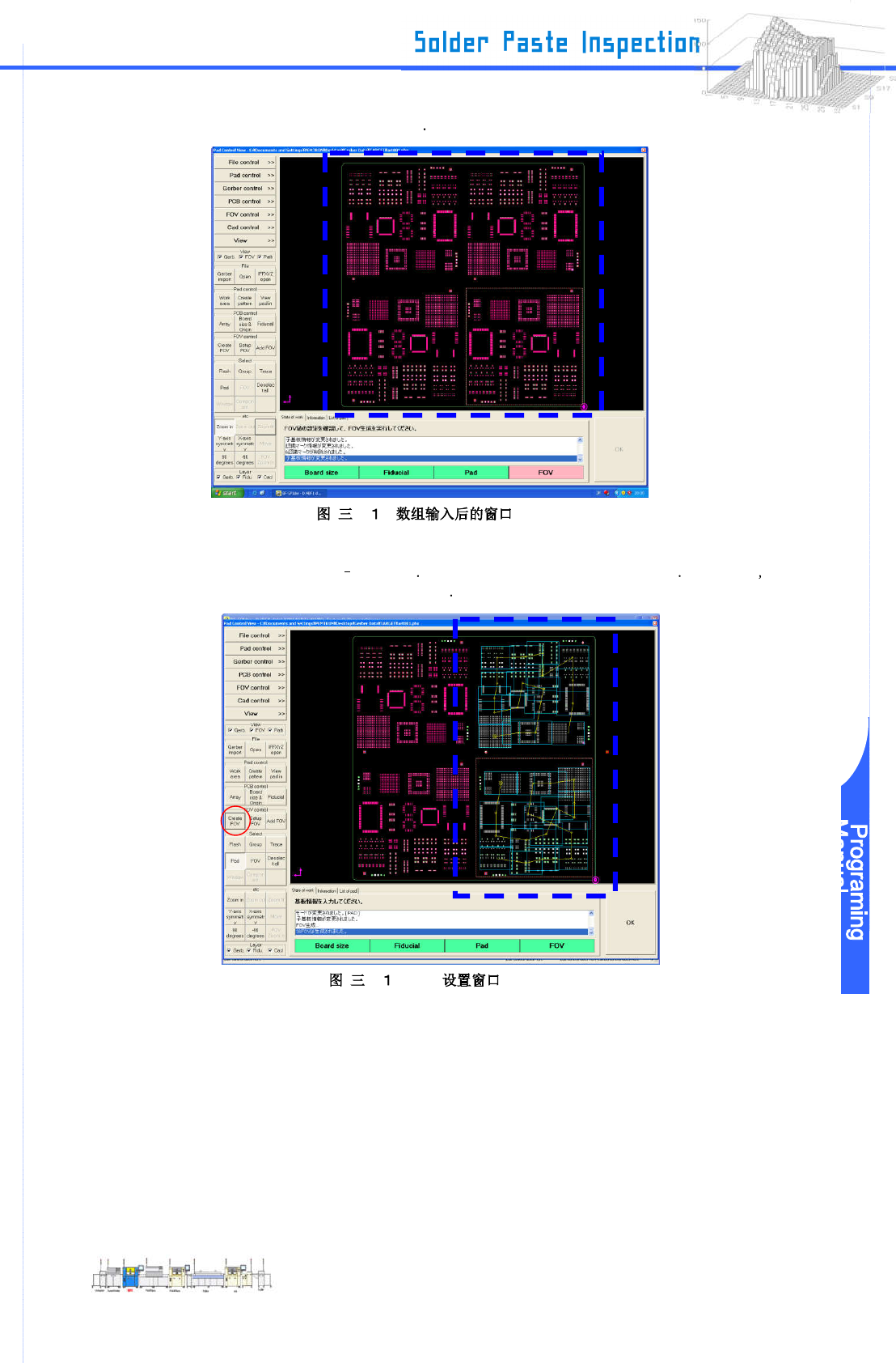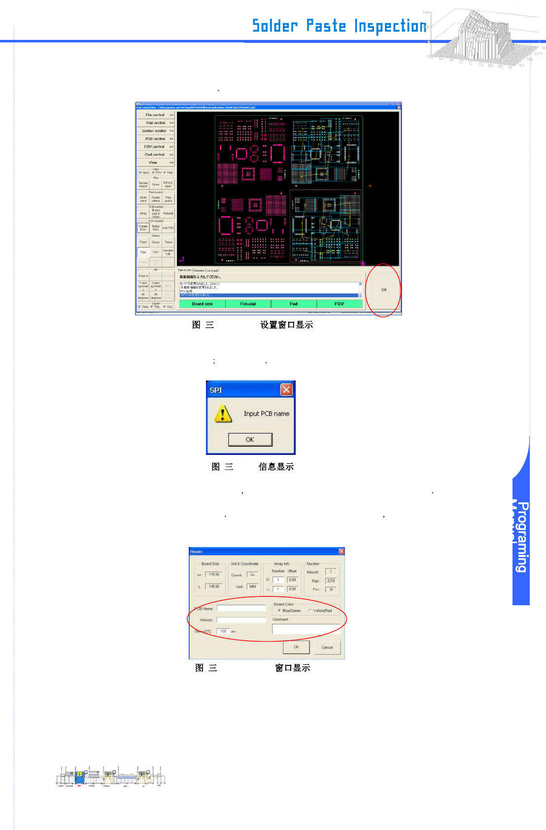 www .pemtron.com 39 Step 22 : 点击“ OK ”在窗口的右下角 -5-17 FOV Step 23 : “ Input PcbName ” 信息显示 点击“ OK ” -5-18 Step 24 : 在 Header 上输入分组名称和板名 并选择板的颜色 “ Blue/Green ” 或是 “ Y ellow/Red ” 进入模板 [T] 输入金属膜片厚度 根据需要在 Comment 栏输入任何注释 然后点击…