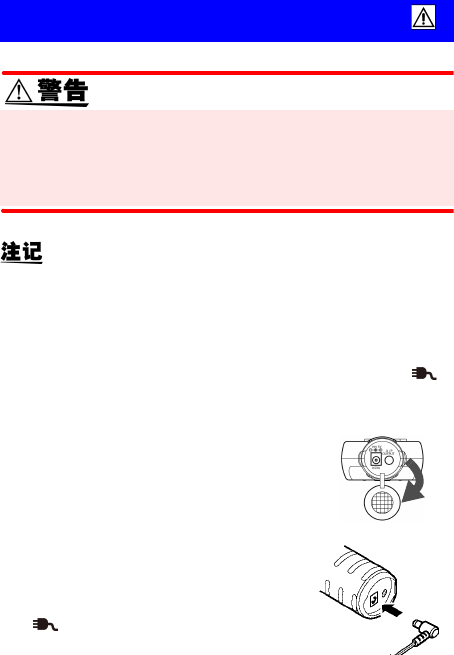 第 2 章 测量前的准备 19 连接 AC 适配器 (选件) (仅限于 F T3406 ) AC 适配器请务必使用指定的 Z1004 AC 适配器。 AC 适配器的额 定电源电压为 AC100 V ~ 240 V (已考虑额定电源电压± 10% 的 电压波动) , 额定电源频率为 50/60 Hz 。 为了避免发生仪器损坏和 电气事故,请绝对不要在此以外的 电压条件下使用。 • AC 适配器的输出 会因瞬时停电等而降低。为了避免 因 这…