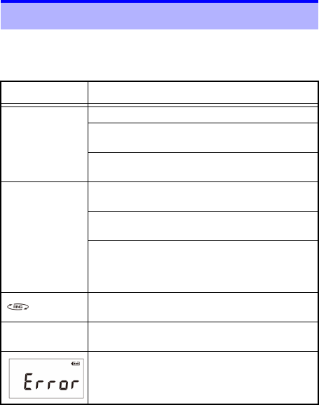 第 6 章 维护和服务 44 认为有故障时,请确认以下 “ 送去修理前”后,与购买店 (代理店)或最 近的营业所联系。 送去修理前 • 请用运输时不会破损的包装, 同时写明故障内容。 对于运输所造成的破损 我们不加以保证。 6.4 有问题时 症状 确认项目与对策 打开电源后,画面 上没有显示 电池是否正确装入 ?( ⇒ 第 17 页 ) 电池是否耗尽 ? => 请更换电池。 ( ⇒ 第 17 页 ) AC 适配器是否正确连接 ? …