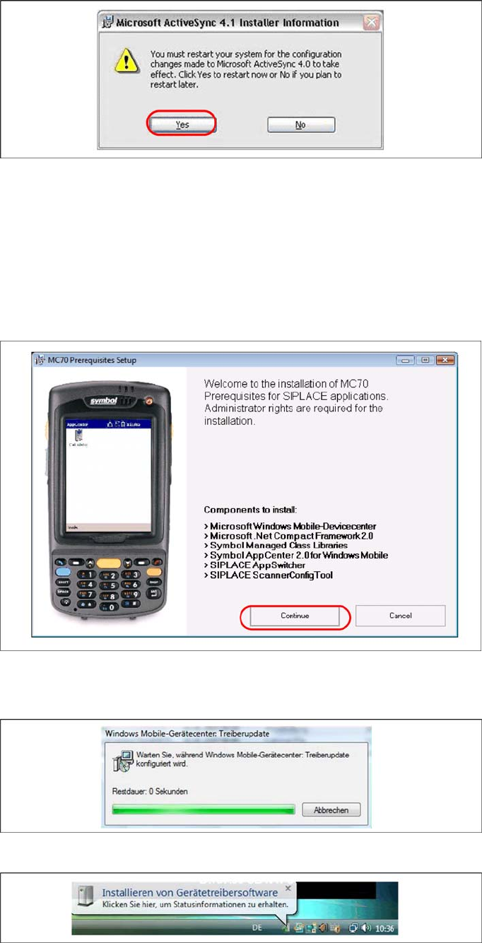 X Please start MC70 Prerequisite installation from CD after the restart.