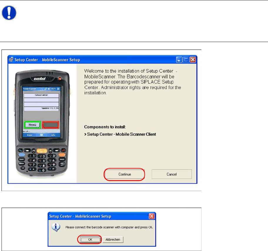 Installation Motorola / Symbol MC70 1D/2D barco de scanner Hardware Installation Installation Manual SIPLACE Setup Center V3.0 31 6.2.3.4 Setup Center Client Inst allation The installation for Setup Center – MobileScan n…