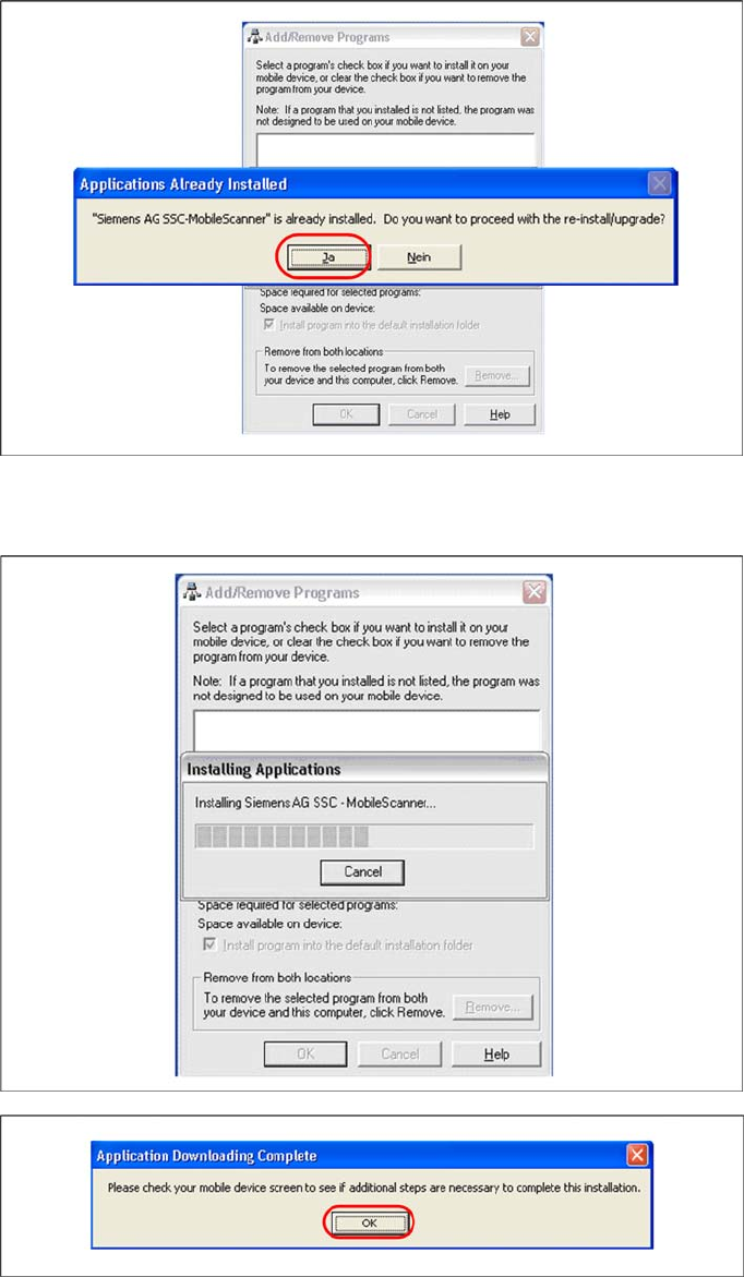 X In case of a upgrade installation confirm the upgrade of Siemens SSC Mobile Scanner with "Yes".