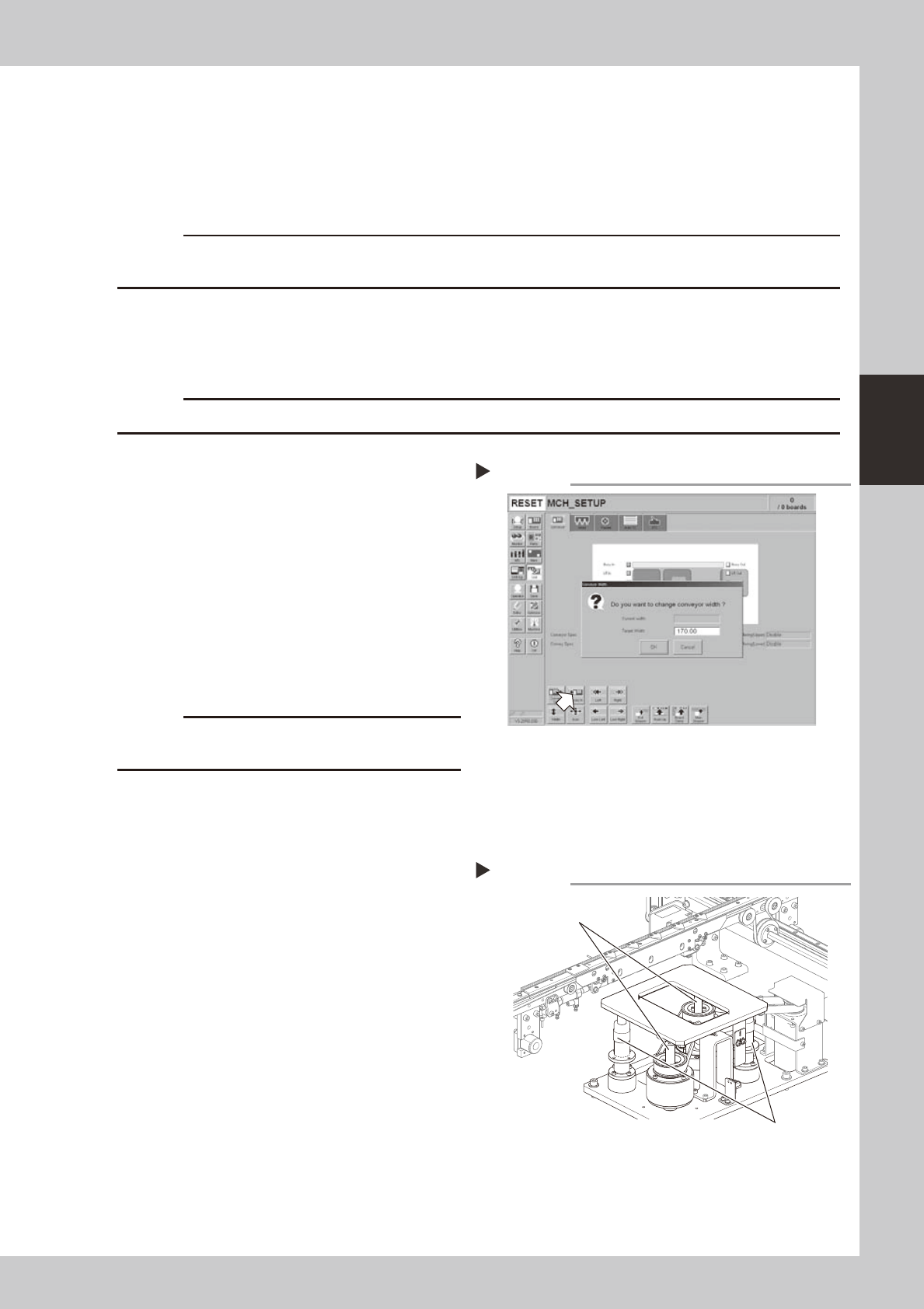 Setting the conveyor width