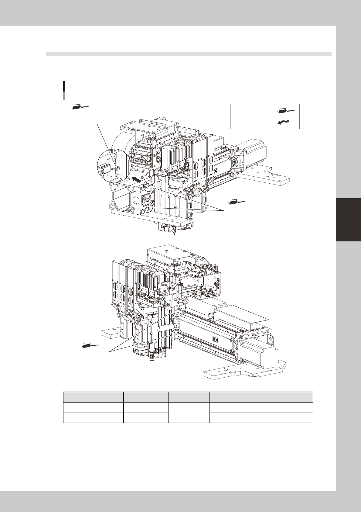 4-4 4 Lubrication points 2.2.2 Y -axis guide and ball screw Y -axis lubrication points Grease nipples for Y -axis guide Grease nipples for Y -axis guide Grease gun: Manual lubrication: Grease nipple for Y -axis ball scre…