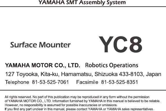 YAMAMHA surface mounter (or related machine) and off-line PC nor can accept responsibility for problems occurring