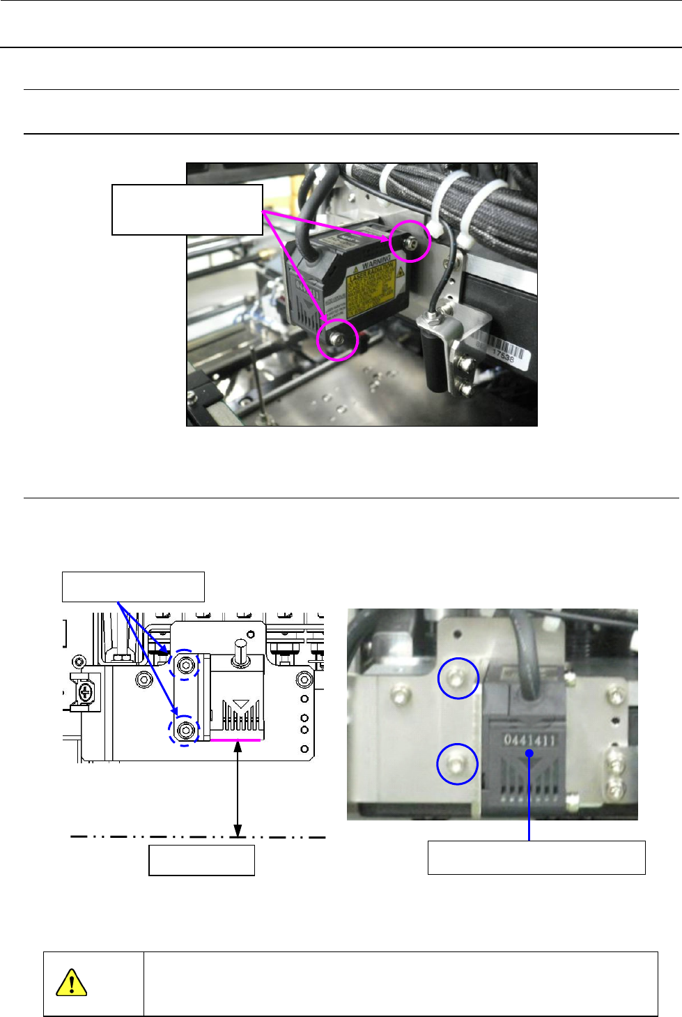 维修调整要领书 3-8 3-3 . HMS 的更换 3-3 -1 . HMS 头部的更换 图 3- 3-1 -1 HMS 头部的更换 3-3 -2 . HMS 高度调整 在 CAL 部上移动 HMS 传感器, 传感器下面到 CAL 部上面的距离为 50 ± 0.2m m 。 请拧松 2 处的①带垫 片内六角螺栓,调整到规定值。调整后,用 2 处的①带垫片内六角螺栓进行固定。 图 3- 3-2 - 1 HMS 传 感 器高度 调 整 调整…