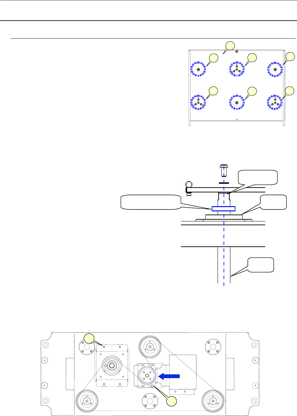 2) 请松开④编码器组件定位螺丝,将编码器组件朝箭头方向移动,使駆动支撑台滚珠螺杆用的牙轮
