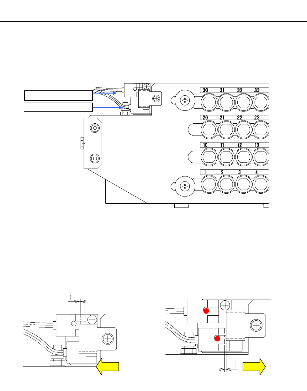 OPEN 时→逐渐打开滑板,在 LED 熄灭之后进入 1mm 的地方固定传感器碰块。