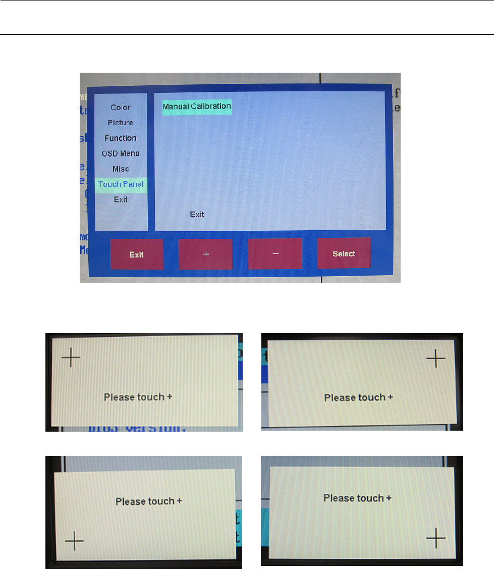 2) 操作 OSD 的“+”,“-”,使光标移动至“Touch Panel”。