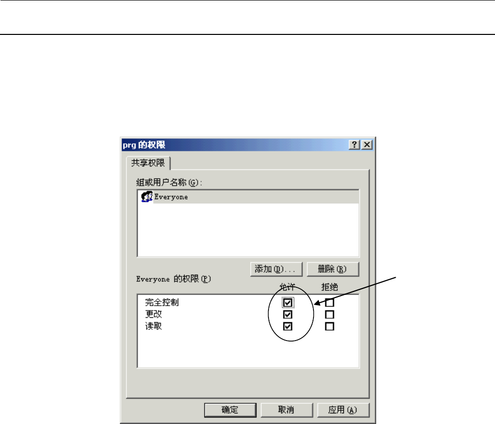 7) 在上述画面中,请选择③<权限(P)>按钮,以显示「prg 的权限」对话框。这里,在 everyone