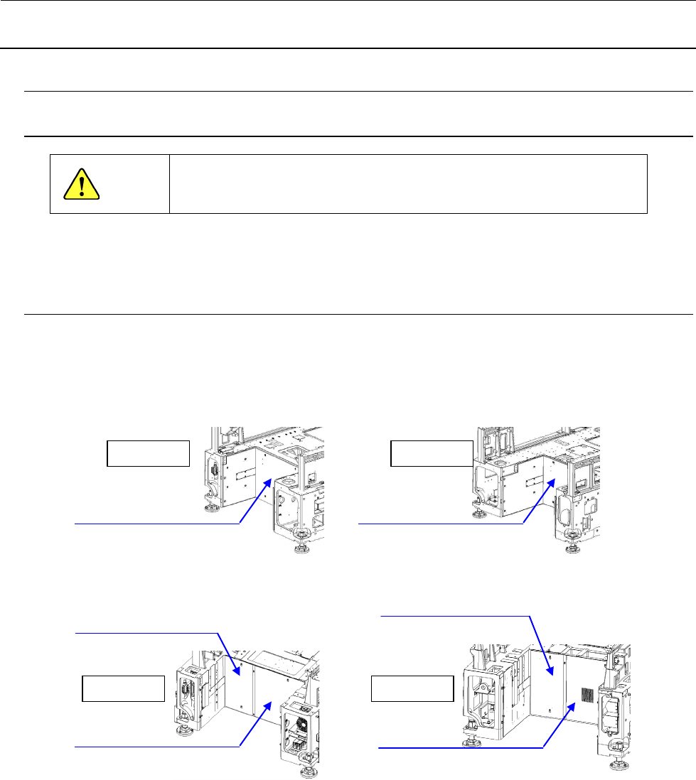 维修调整要领书 14 - 41 2 ) 拆下后侧台架基板。 3 ) 将机器主体电源装置的连接器束线全部拆下。 ※ 已安装 了作 为选配件的共面装置时,也要卸 下安装 在机 器主体电源装置旁边的共面电源 装置。 4 ) 拆下 用于固 定装置的圆头螺丝,把机器主体 电源装 置向 后侧取出,取出时要同时注意装 置前导管内的束线。 台架基板组件 前侧 后侧