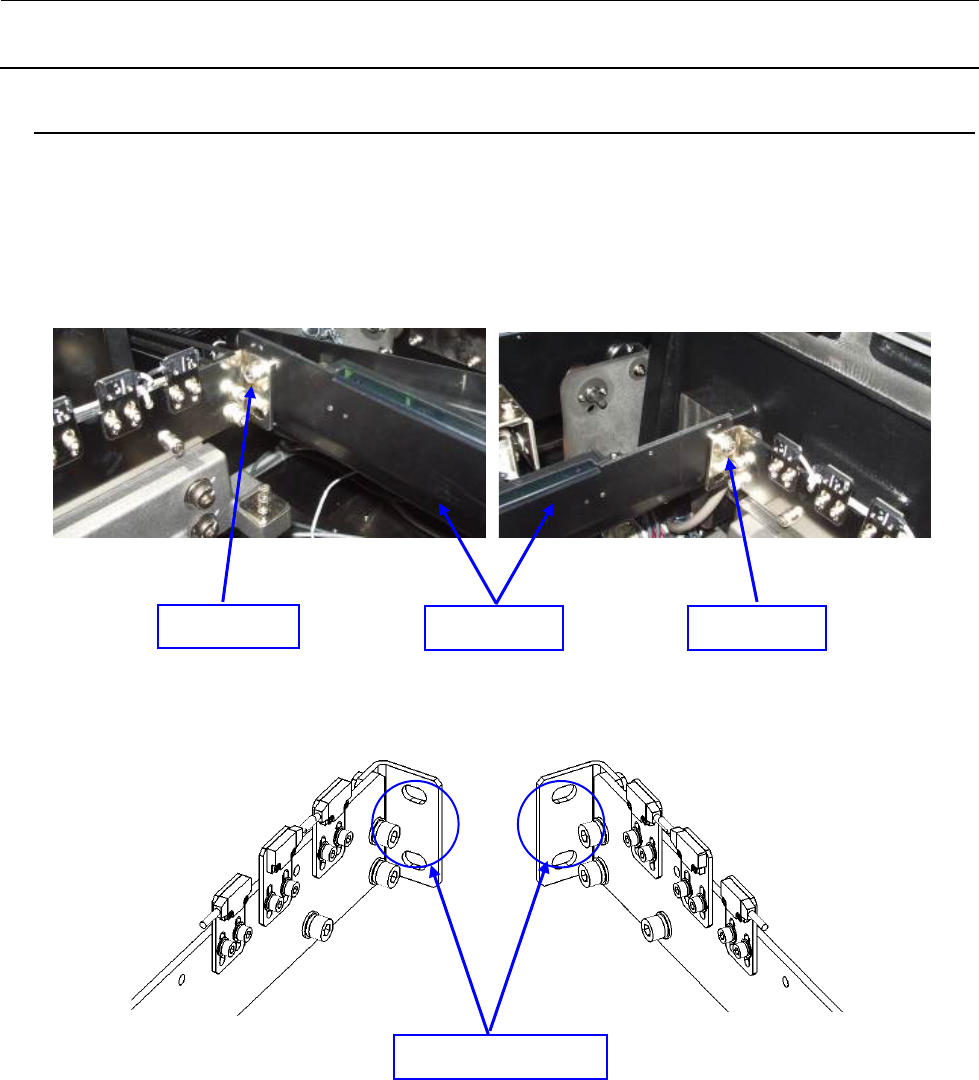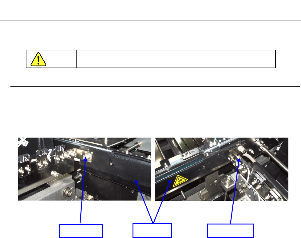 维修调整要领书 16 -1 16 送 料器部位标尺(选购品) 16 -1 . FPI (前)的拆卸( M 基板规格 ・ L 基板规格) 如下图所示,是用 M6×12 的带垫片螺丝固定在 FPI 托架上,而 FP I 托架则是固定在供料器浮起传感 器托架上。 卸下 2 个螺丝,向上滑动即可拆卸。 图 16 -1 -1 为了防止突然的起动造成事故,请关掉电源之后再进行操作。 带垫片螺丝 带垫片螺丝 FPI 装置 F 危险