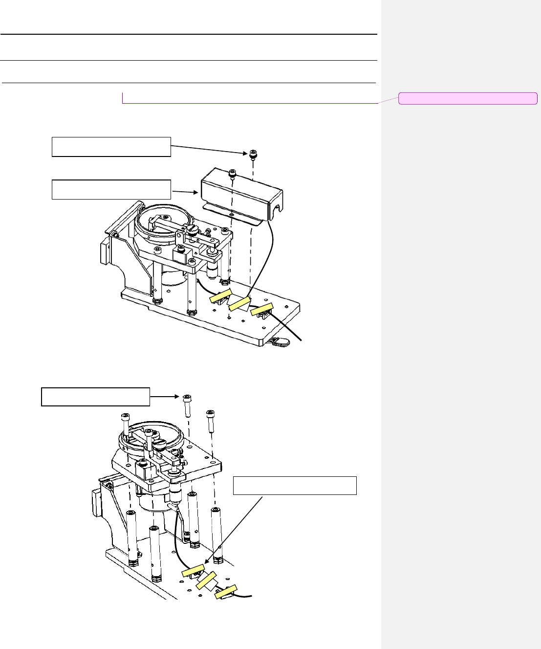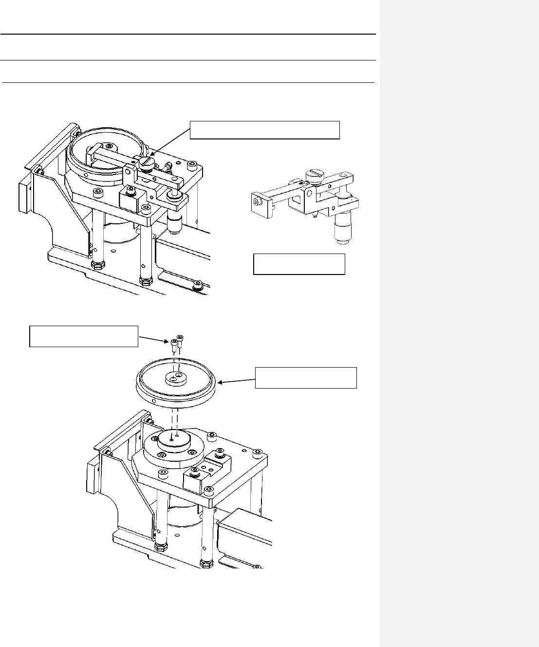 维修调整要领书 20 -2 20 -2 . 托盘的更换 1 ) 确认主体电源已为 OFF 。 取下 ① ,卸下 ② 。 2 ) 取下 ③ ,卸下 ④ 3 ) 换上新的 ④ 后,按相反的操作顺序将 ④ 装到旋转式焊锡转写装置上。 ① 4017116 KNURLED_KNOB _SCREW ② SQUEEGEE UNIT ③ SM6030802TN SCREW ④ 40107101 SAUCER
