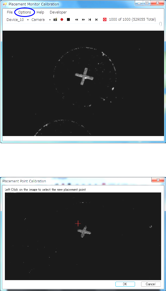 (图像看不清楚时,请通过[Options] - [Current Camera] - [Settings]改变照明的亮度。)