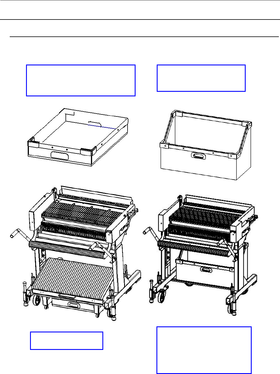 属于电动台架规格时,废料箱的形状与有无切带装置(选配)有关,并不相同。