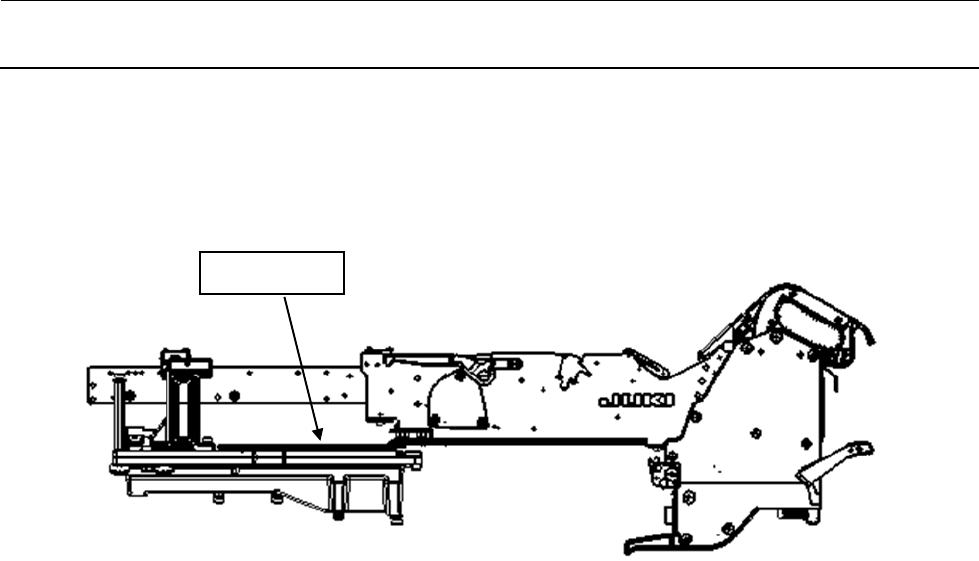 维修调整要领书 12 - 11 ④ 误插入防止传感器的调整顺序 1) 请把 ETF8S 安装在台架左、中、右,确认传感器会不会 OFF 。 2 ) 请确认,当把 ET F8S 放在台架导向板上面的近身侧时传感器变成 OFF 。 ※ 前侧与后侧的检测位置 (Y 方向 ) 不一样。上图为后侧。 导向板上面
