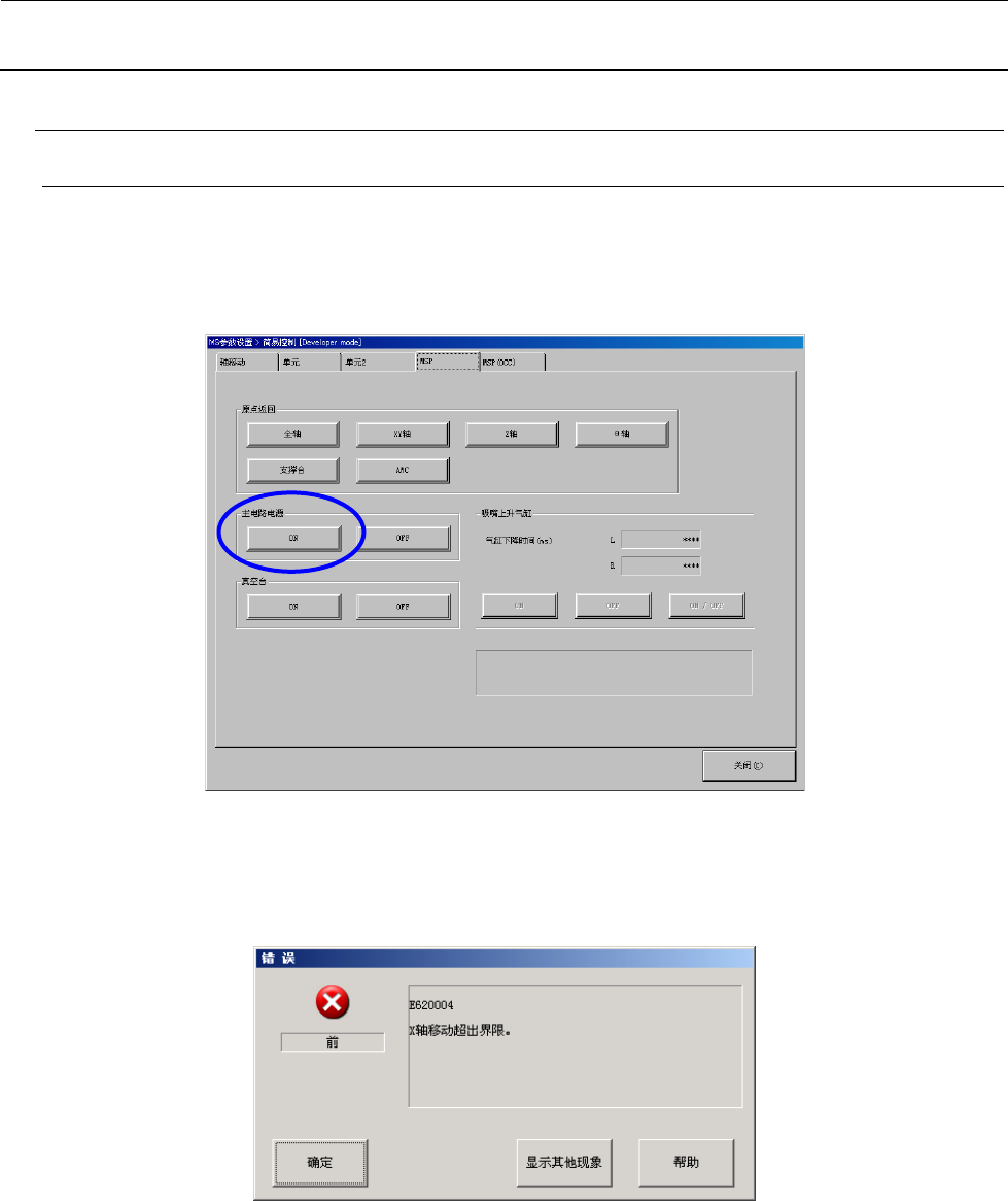 6) 解除后,与第 3)步的操作一样请接通主电路电源,关闭监视器的 X 轴移动极限显示。