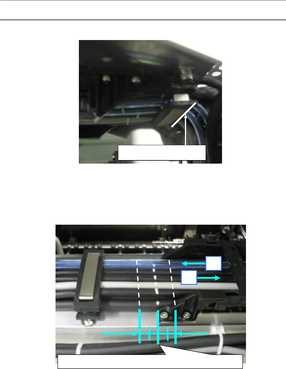 请调整到电缆拖链的端部位于XY拖链电缆的记号(白线)中央。