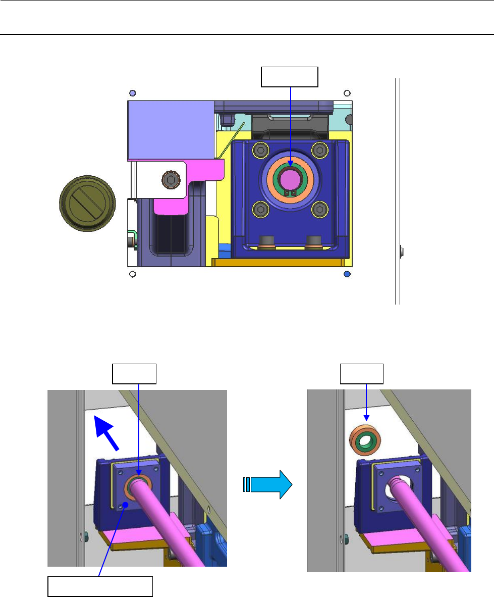 维修调整要领书 1- 55 ( 4 ) 拆下后侧的 C 形环。 ( 5 ) 将轴承从 Y_ADJUST_PLATE 向箭头方向顶推拔出。 C 形环 Y_ADJUST_PLATE 轴承 轴承